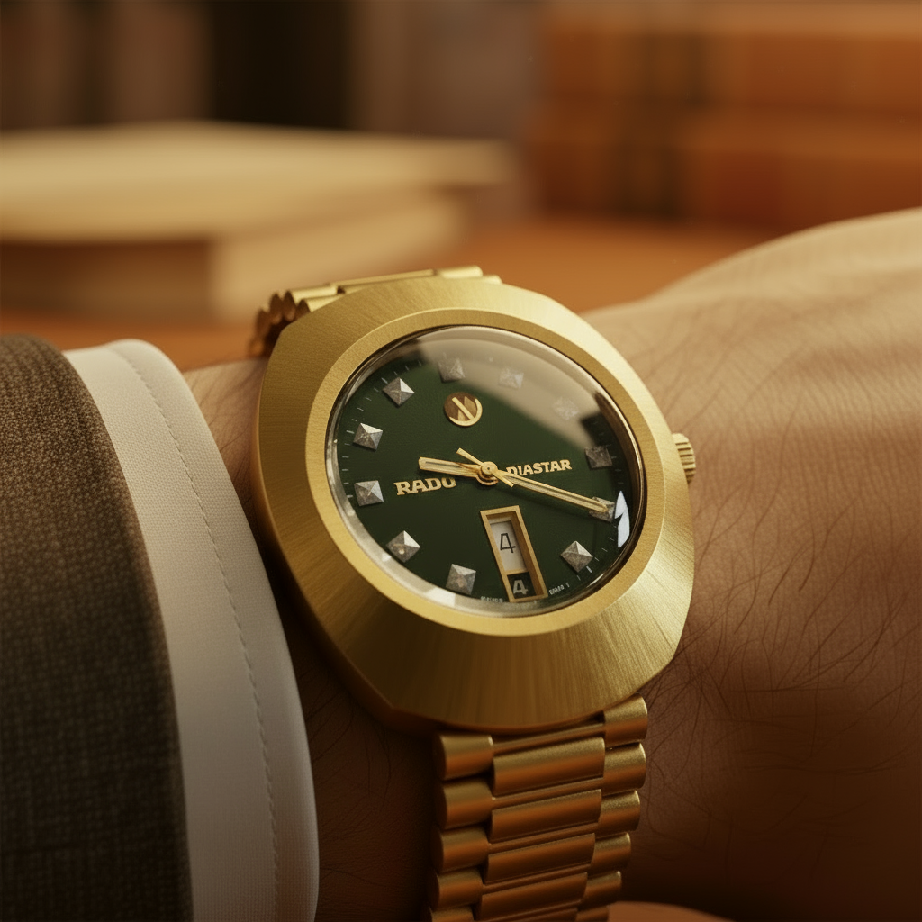 This is a beautiful rado the original black dial unisex automatic diastar wristwatch that is in clean preowned condition. It shows little to no signs of wear. It is fully functional and ready for wear.