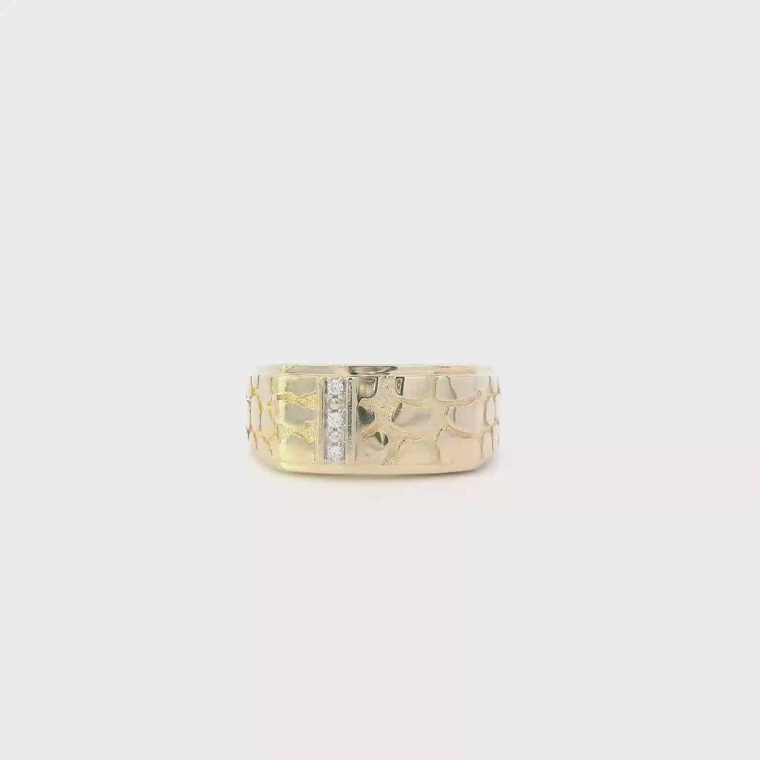 14K Yellow Gold Diamond Nugget Mens Ring - 0.03ct
