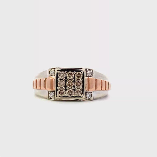 10K White & Rose Gold Rolex Style Men's Diamond Ring - 0.45ct