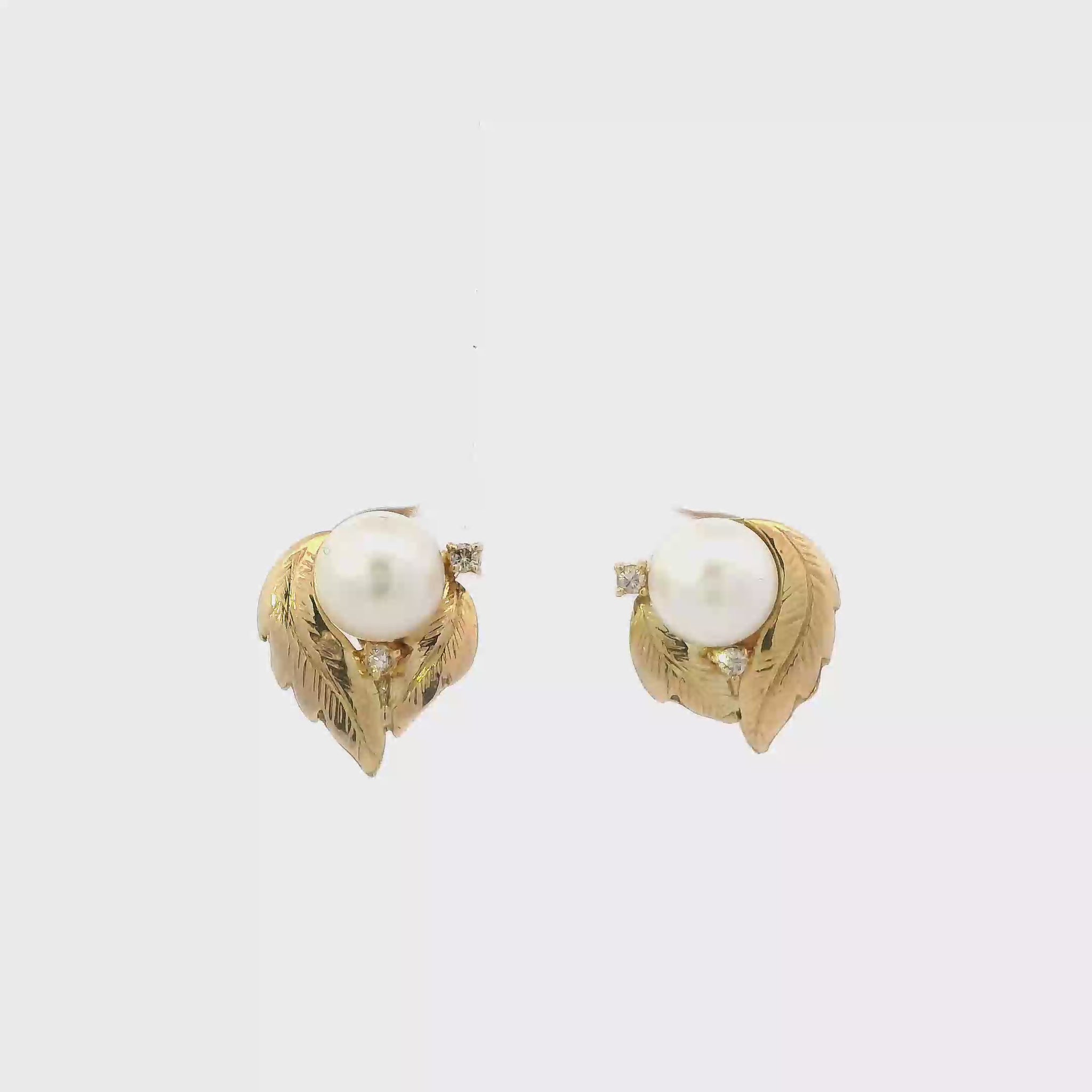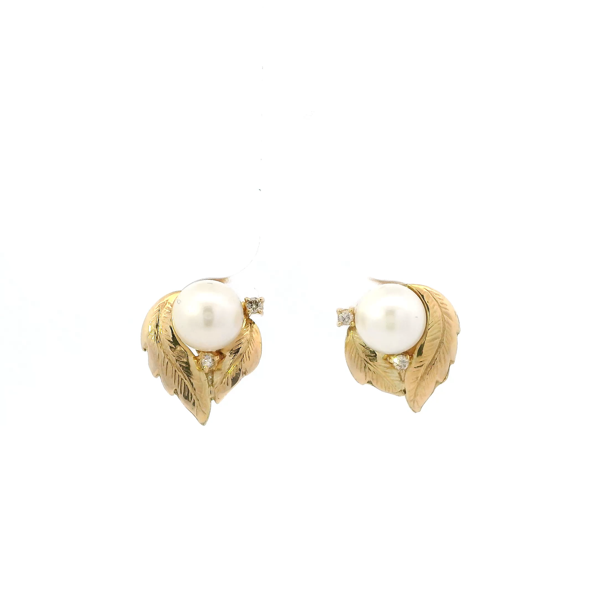 14K Yellow Gold Diamond & Pearl Earrings-0.06ct