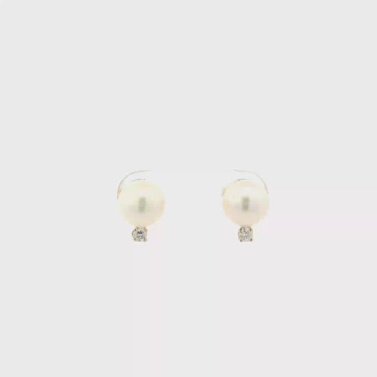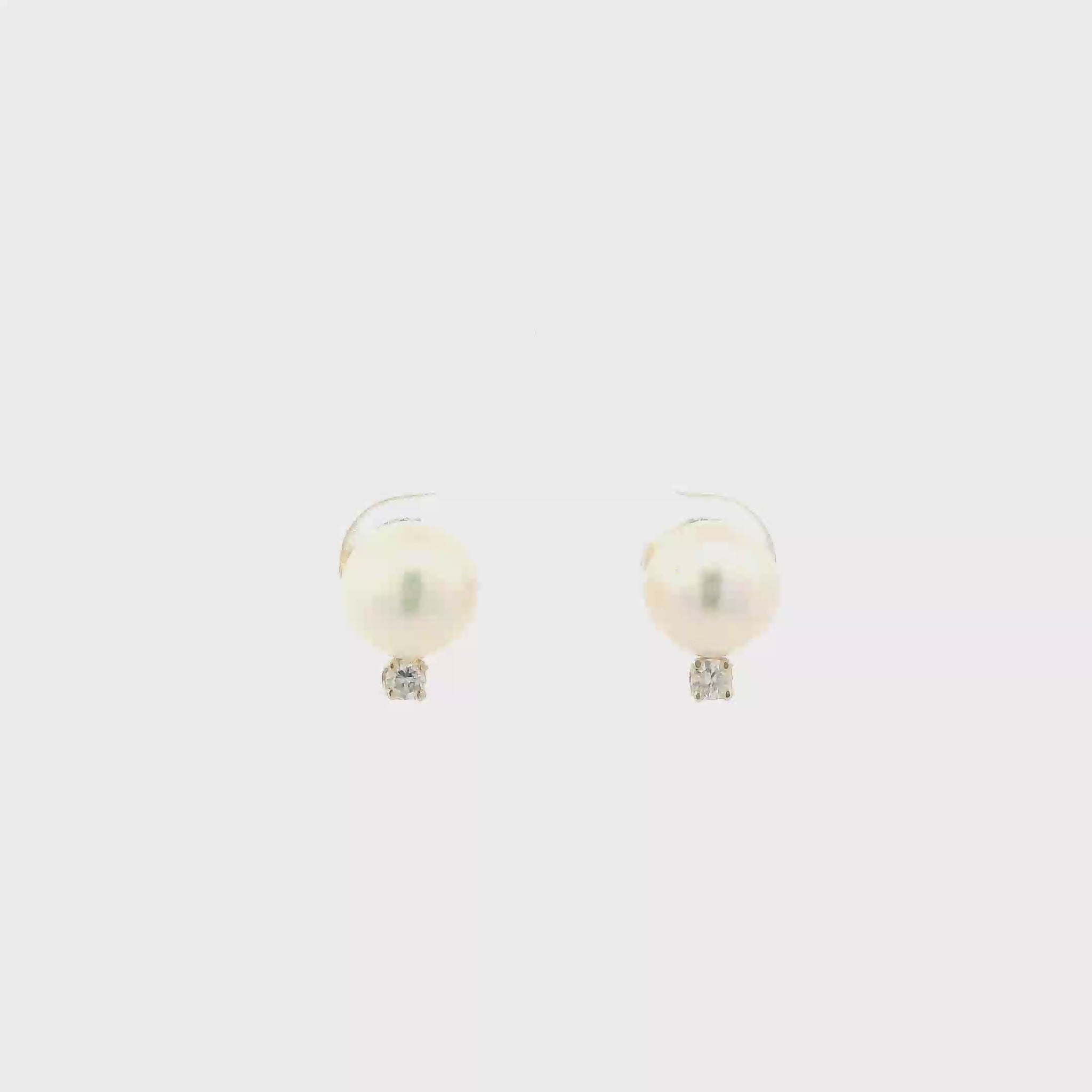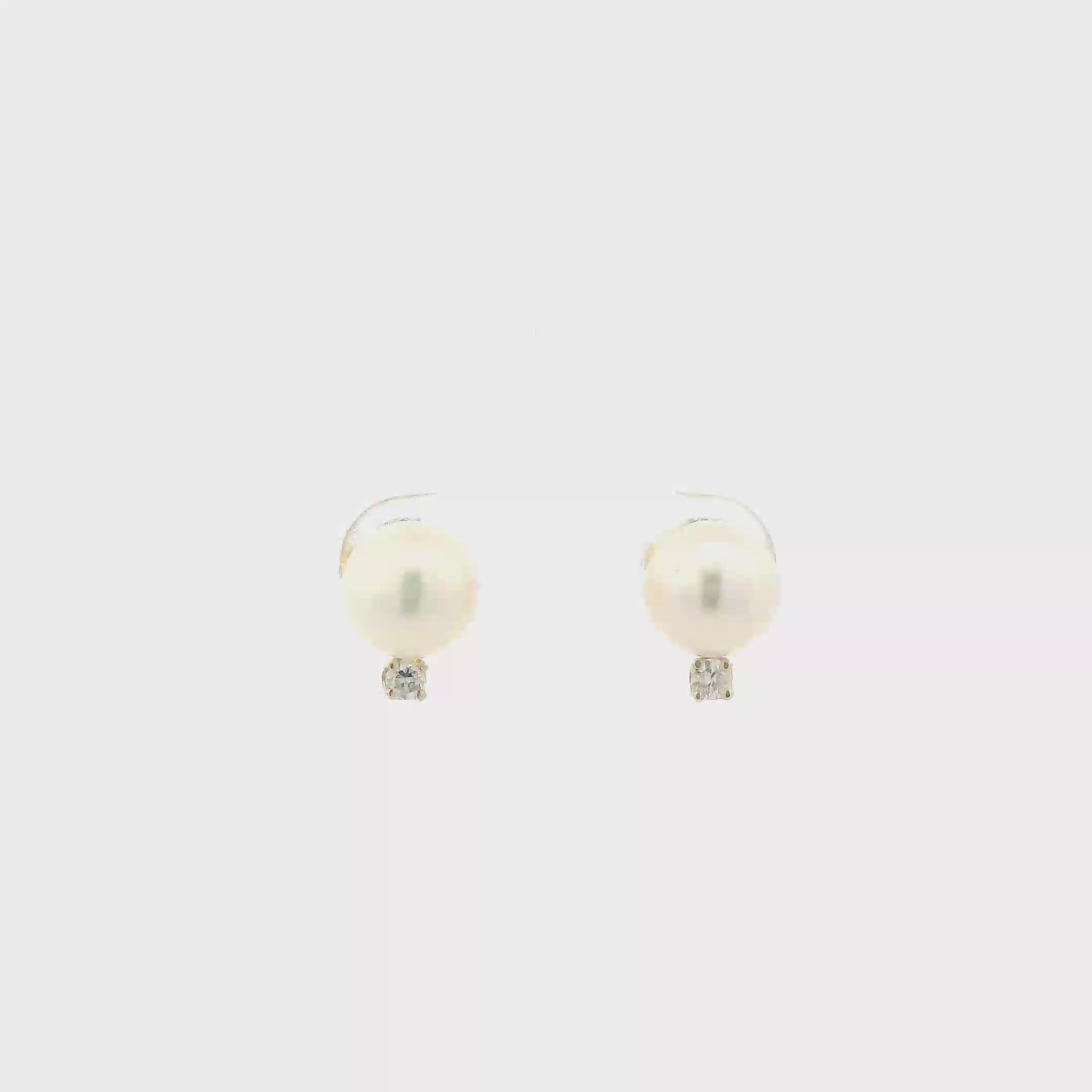 14K Yellow Gold Pearl & Diamond Earrings - 0.10ct
