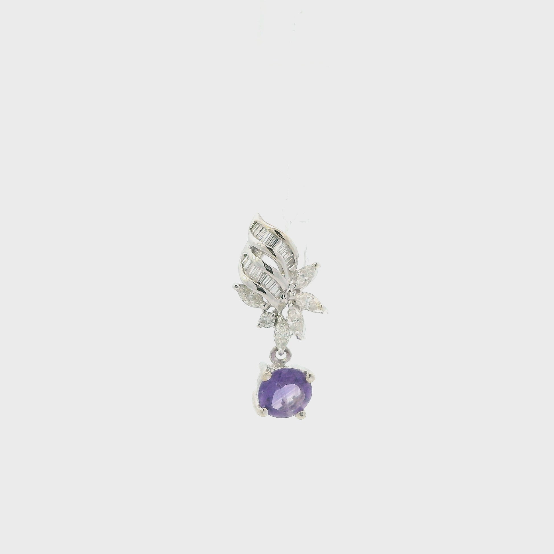 This is a beautiful diamond & amethyst pendant that is in clean preowned condition. It has been authenticated and polished by our in-house goldsmith / gemologist.
