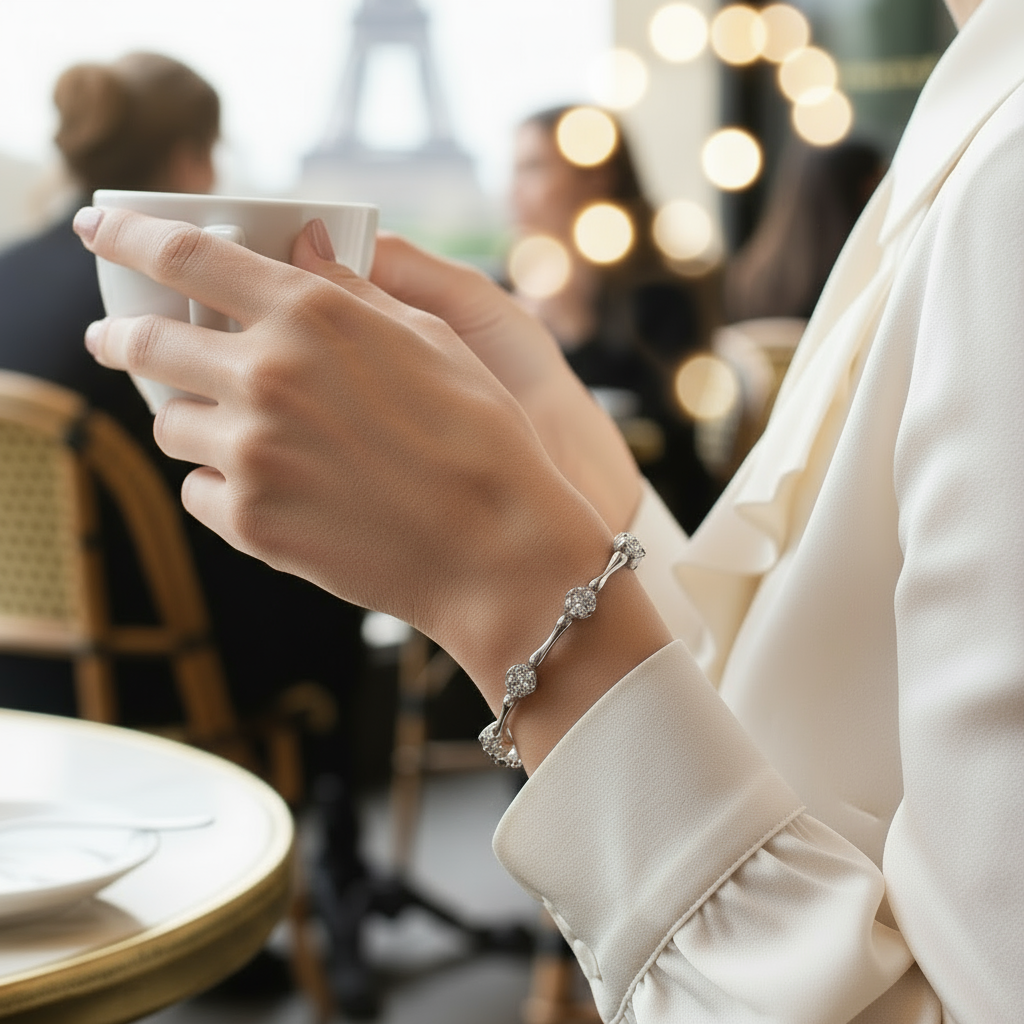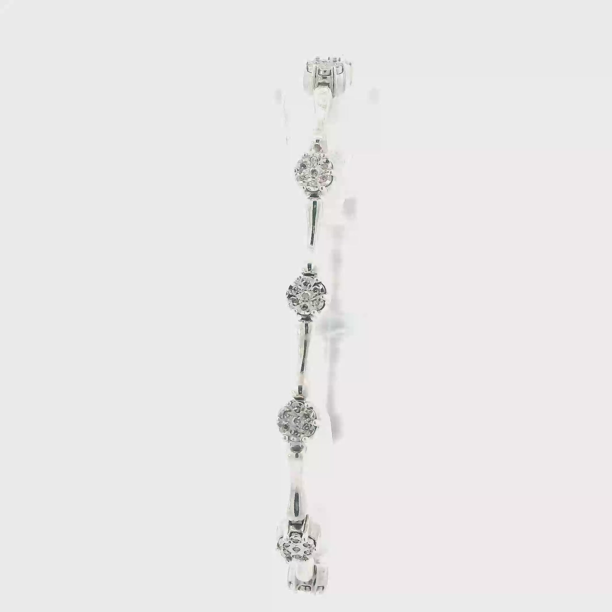 Silver Cluster Diamond Flower Segment Bar link Tennis Bracelet - 0.77ct