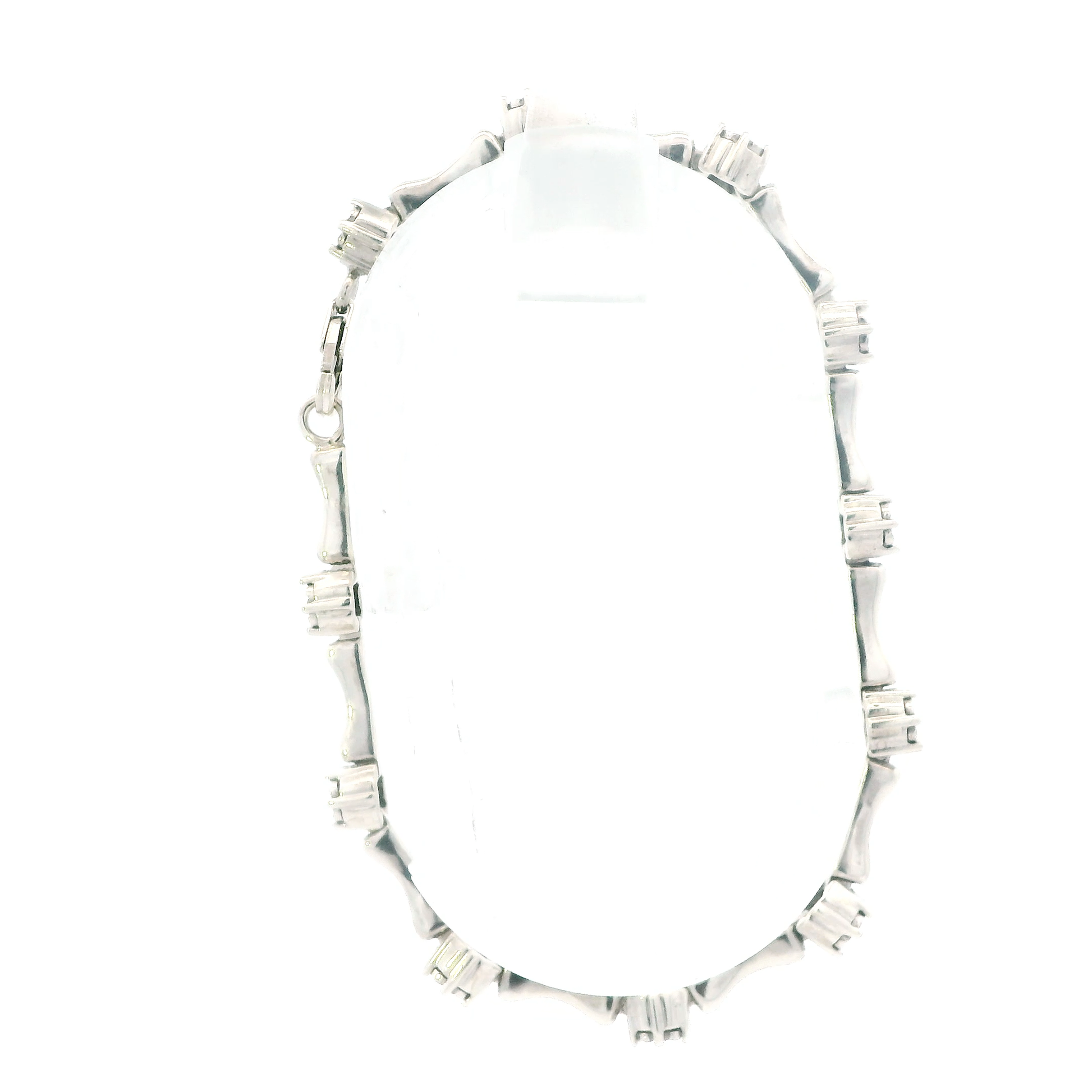 This is a beautiful silver diamond flower segment flared bar link style tennis bracelet that is in clean preowned condition. It has been authenticated and polished by our in-house goldsmith.