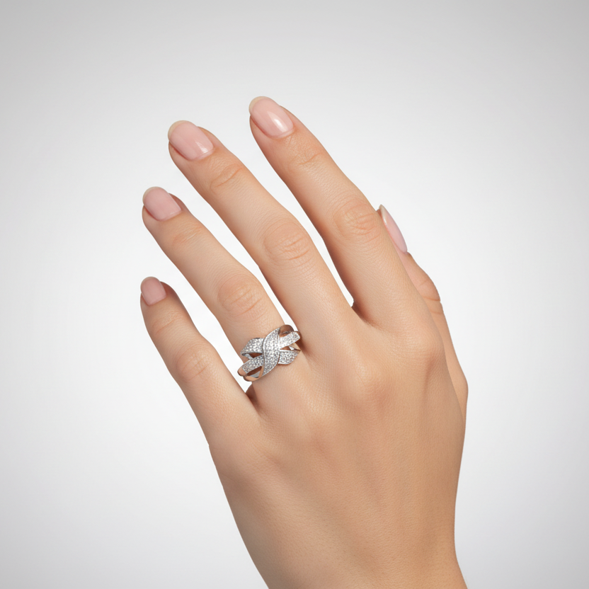 Sterling Silver Diamonds Cross Over X Womens Ring - 0.47ct