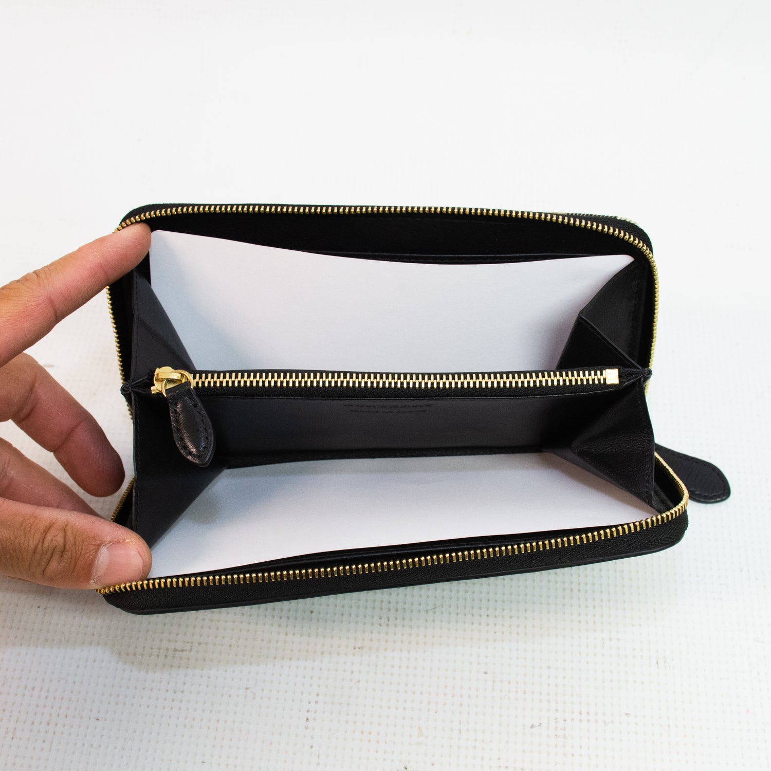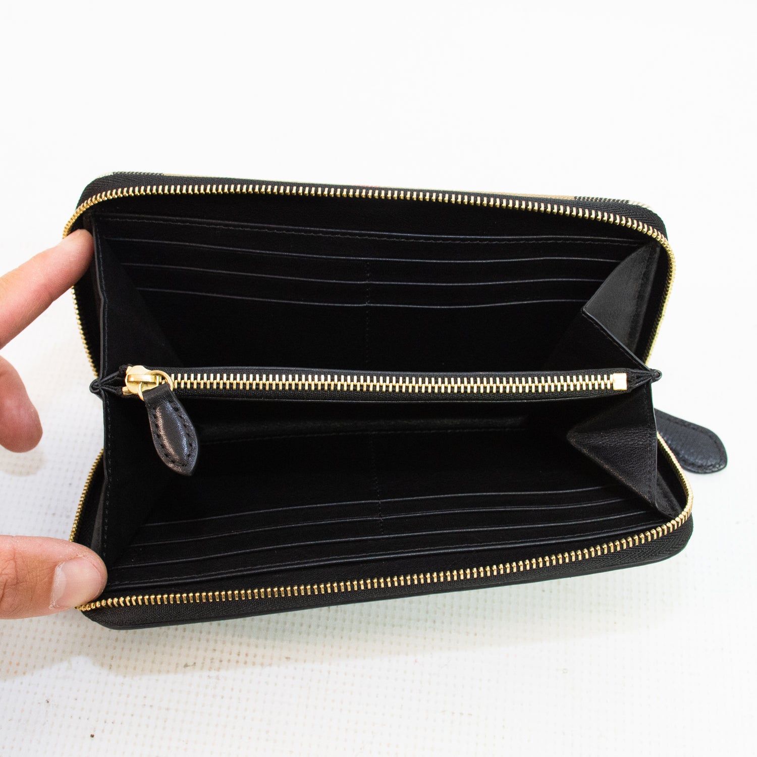 This is a preowned wallet in very good condition. It has no markings on leather as shown in the pictures. It comes with the original dust cover and box.