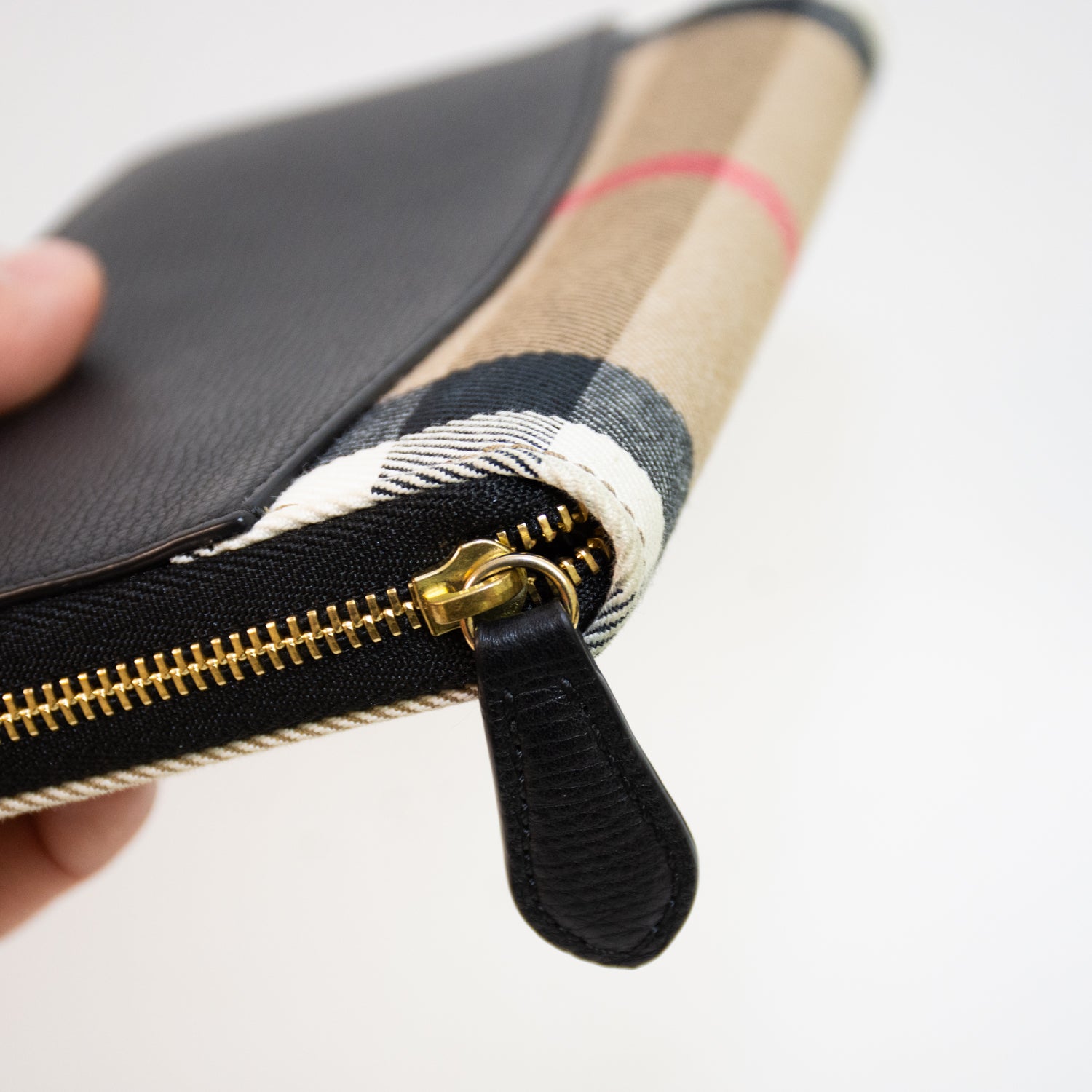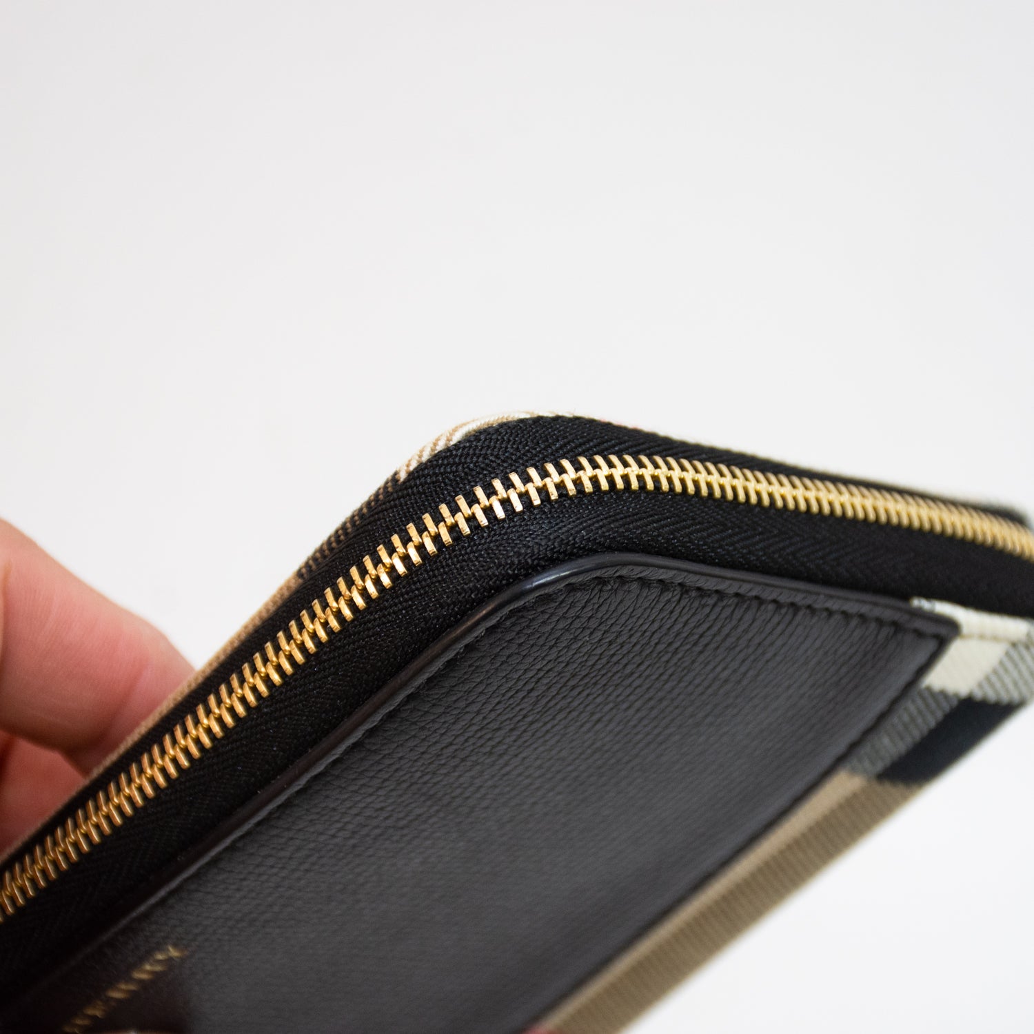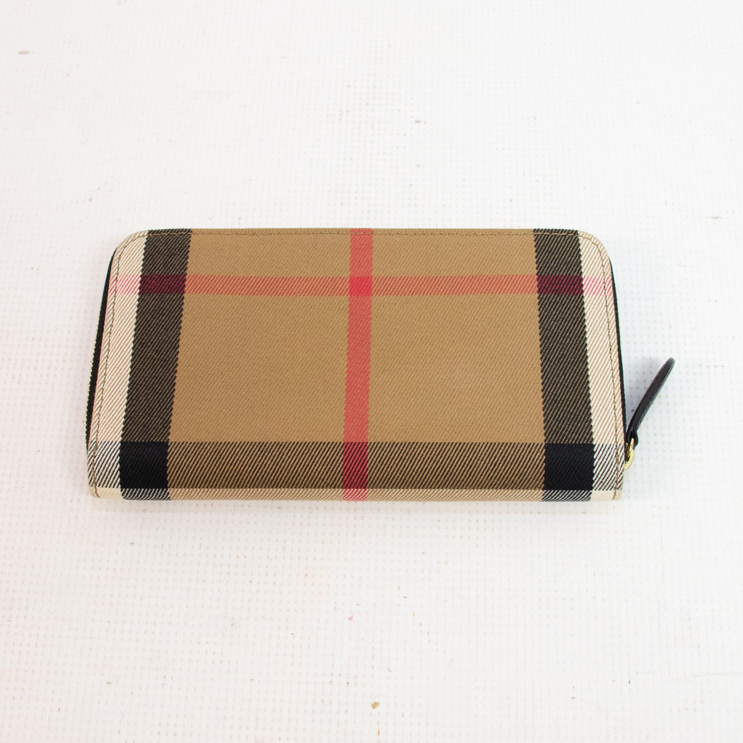 Burberry Elmore Plaid Leather Print Continental Zip Around Wallet