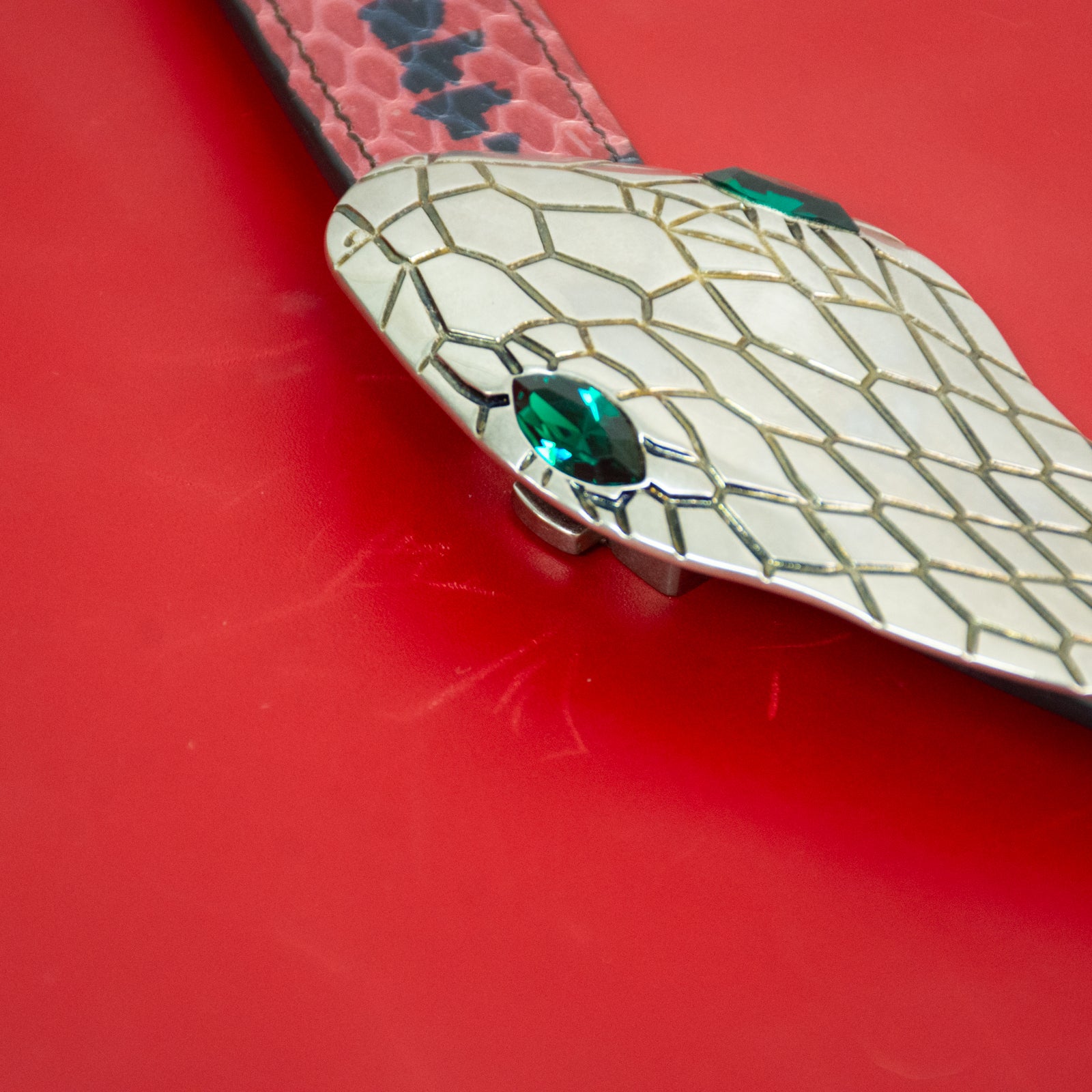 Gucci 453750 Shoulder Handbag 2-Way Lilith Bamboo Coral Snake - Red Leather