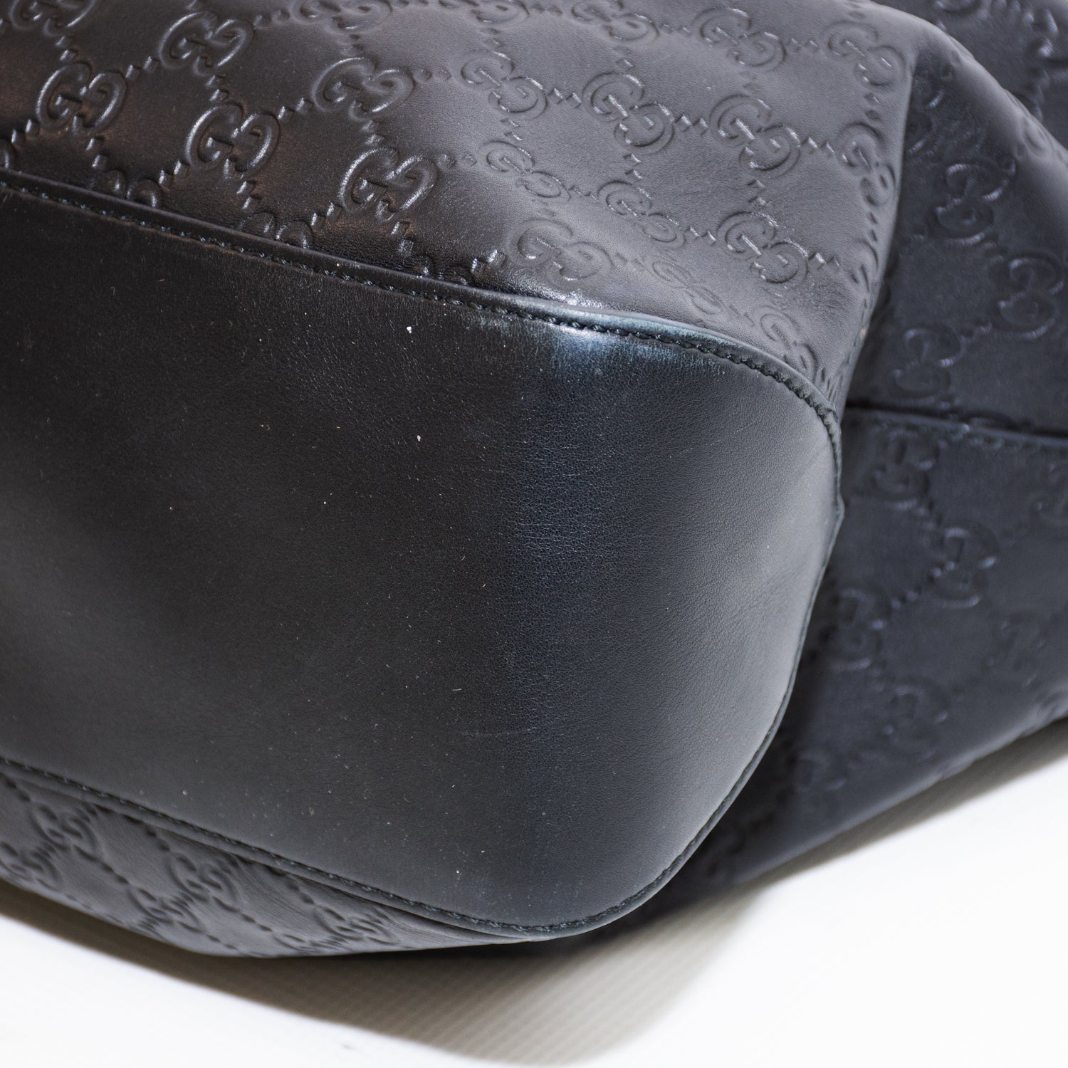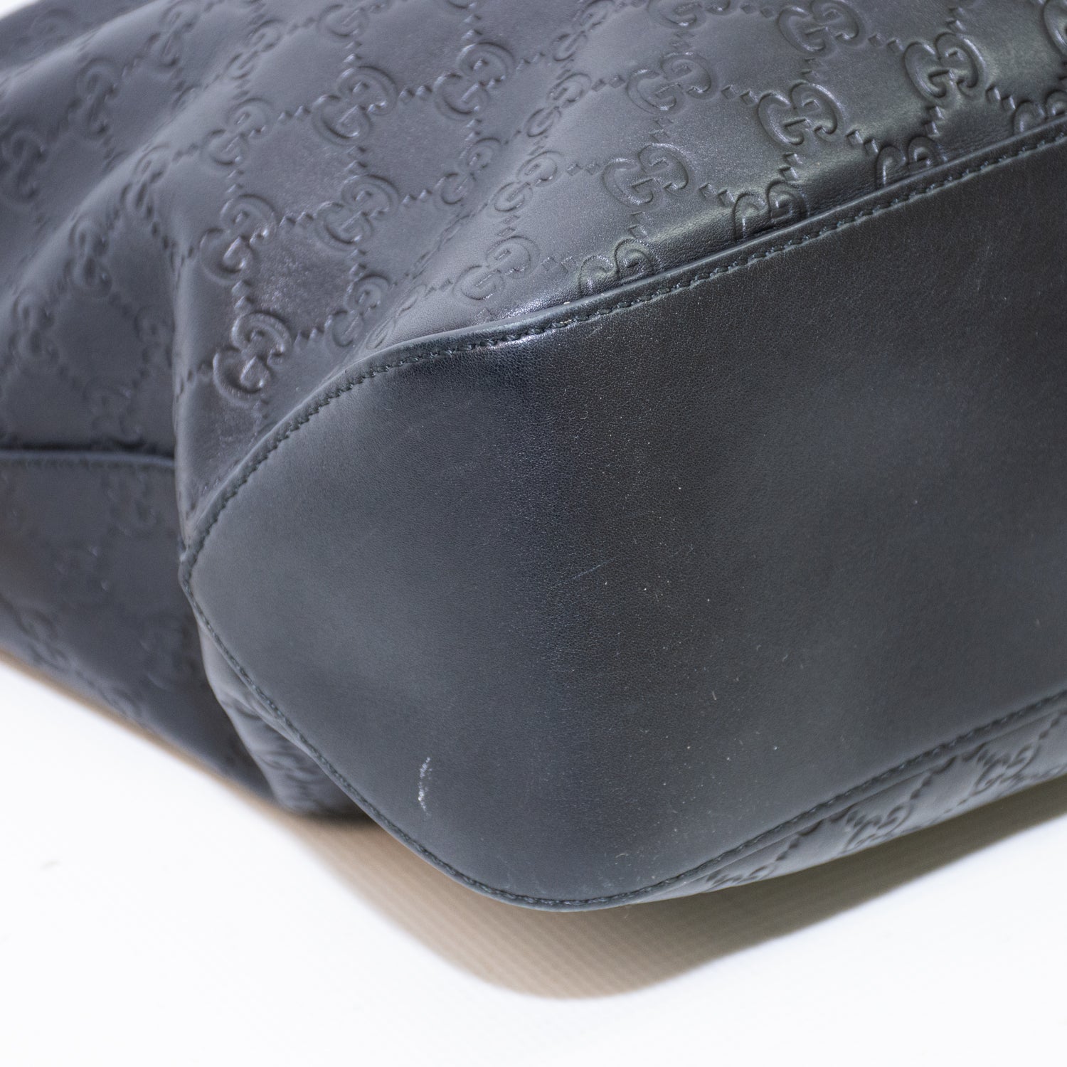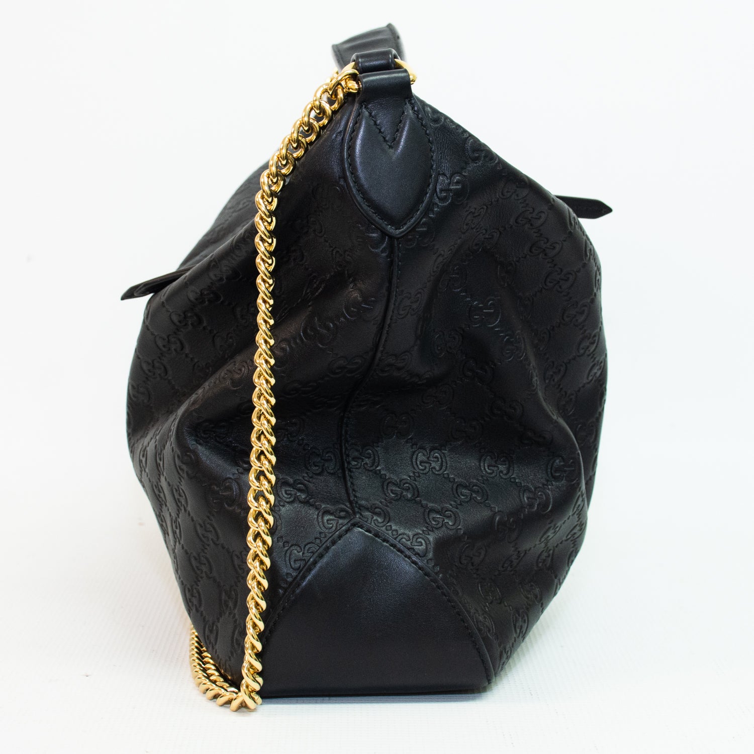 Gucci Black Leather Hobo Signature Gold Link Chain Handbag