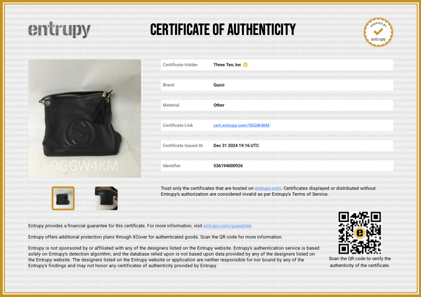 We authenticated this bag with our 3rd party company Entrupy and the certificate is coming with the sale.