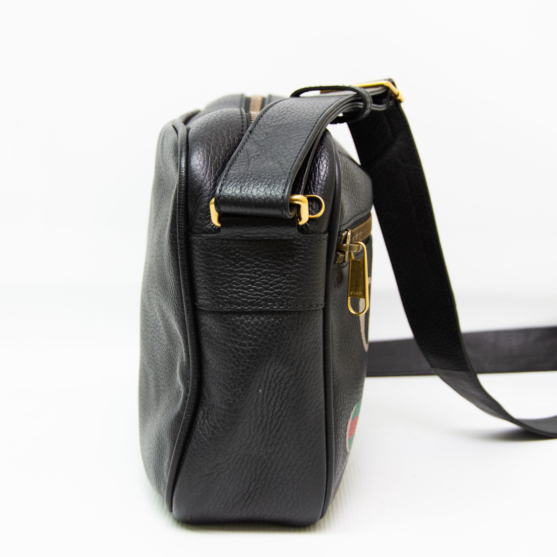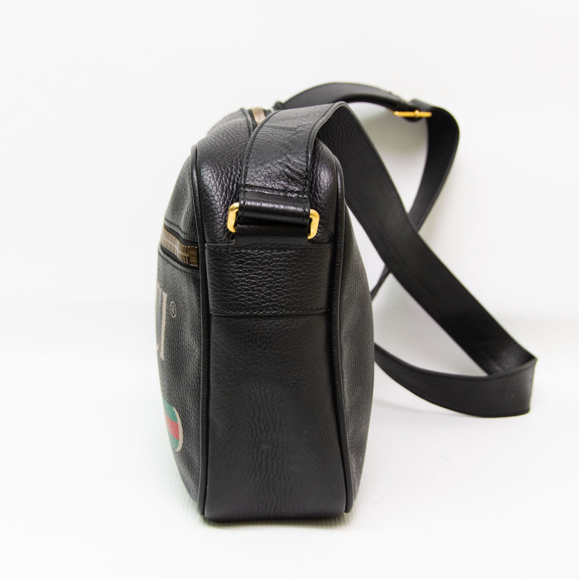 Gucci Crossbody Large Logo Web Print Black Leather Messenger Bag