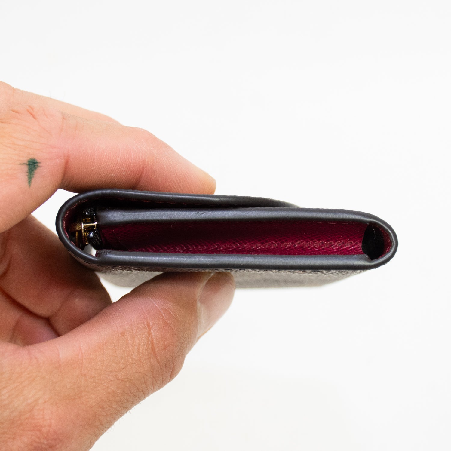 This is a beautiful preowned wallet and shows only light signs of use. It is in very clean condition and with only light scratches on the button as shown in the pictures. It comes with the original dust cover and box.