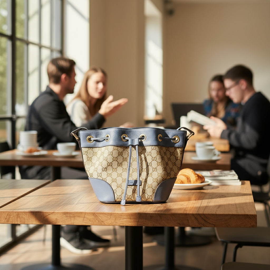 Gucci Khaki Canvas Leather Drawstring Shoulder Bag - 388704