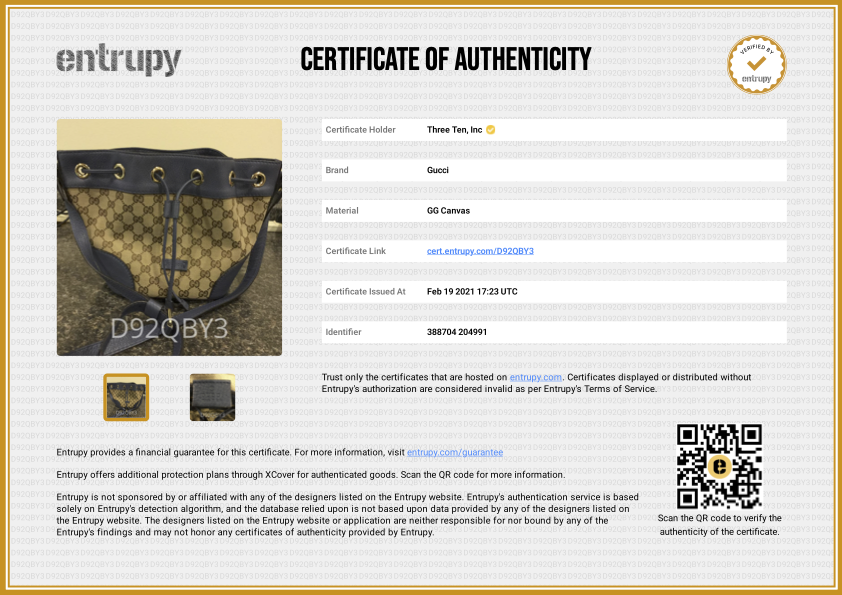We authenticated this bag with our 3rd party company Entrupy and the certificate is coming with the sale.