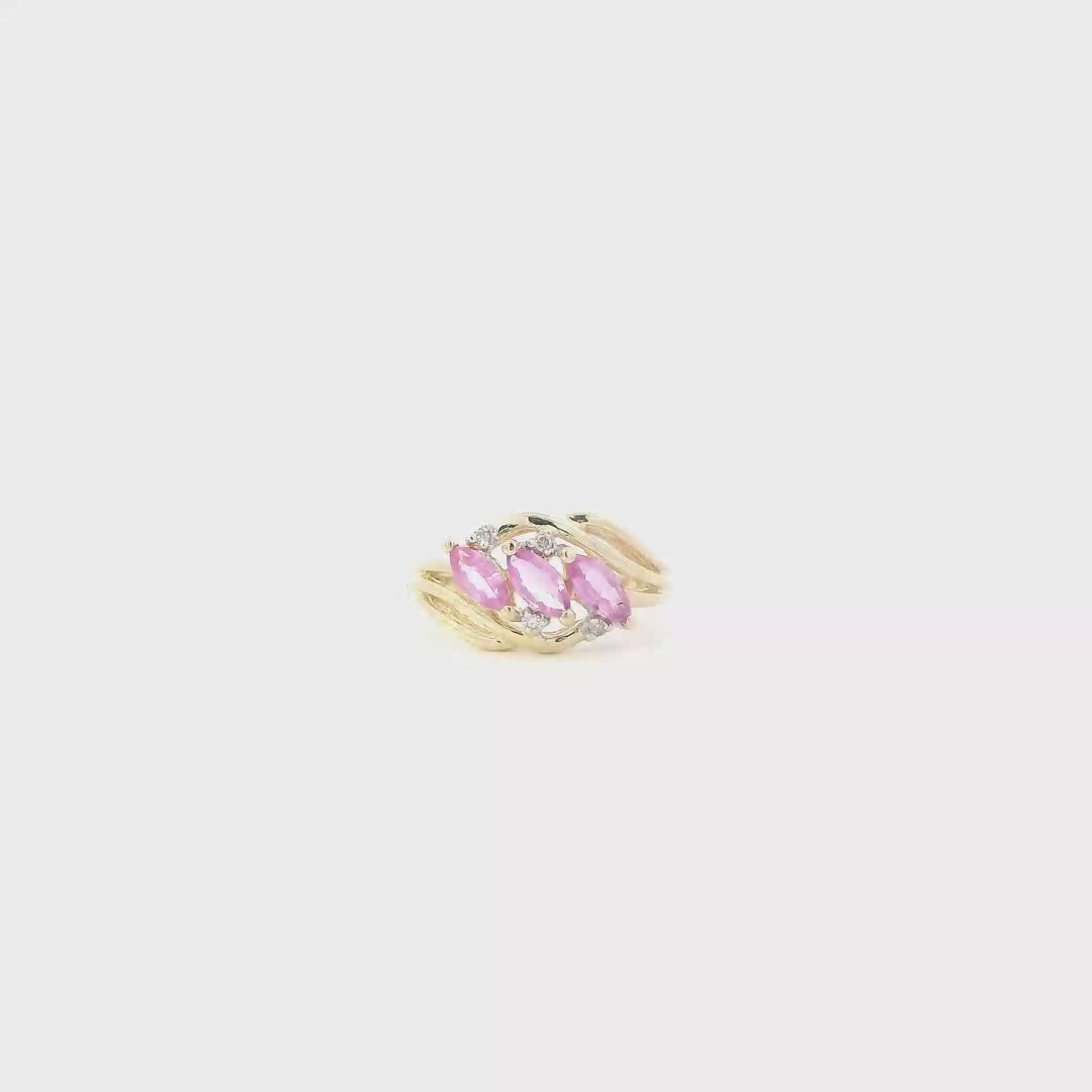 14K Yellow Gold Pink Topaz & Diamonds Womens Ring - 0.04ct