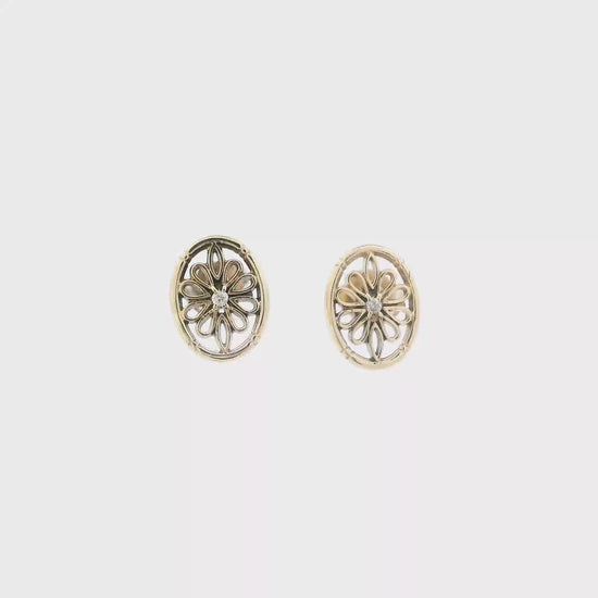 This is a beautiful gold diamond flower stud earring set that is in clean preowned condition. It has been authenticated and polished by our in-house goldsmith.