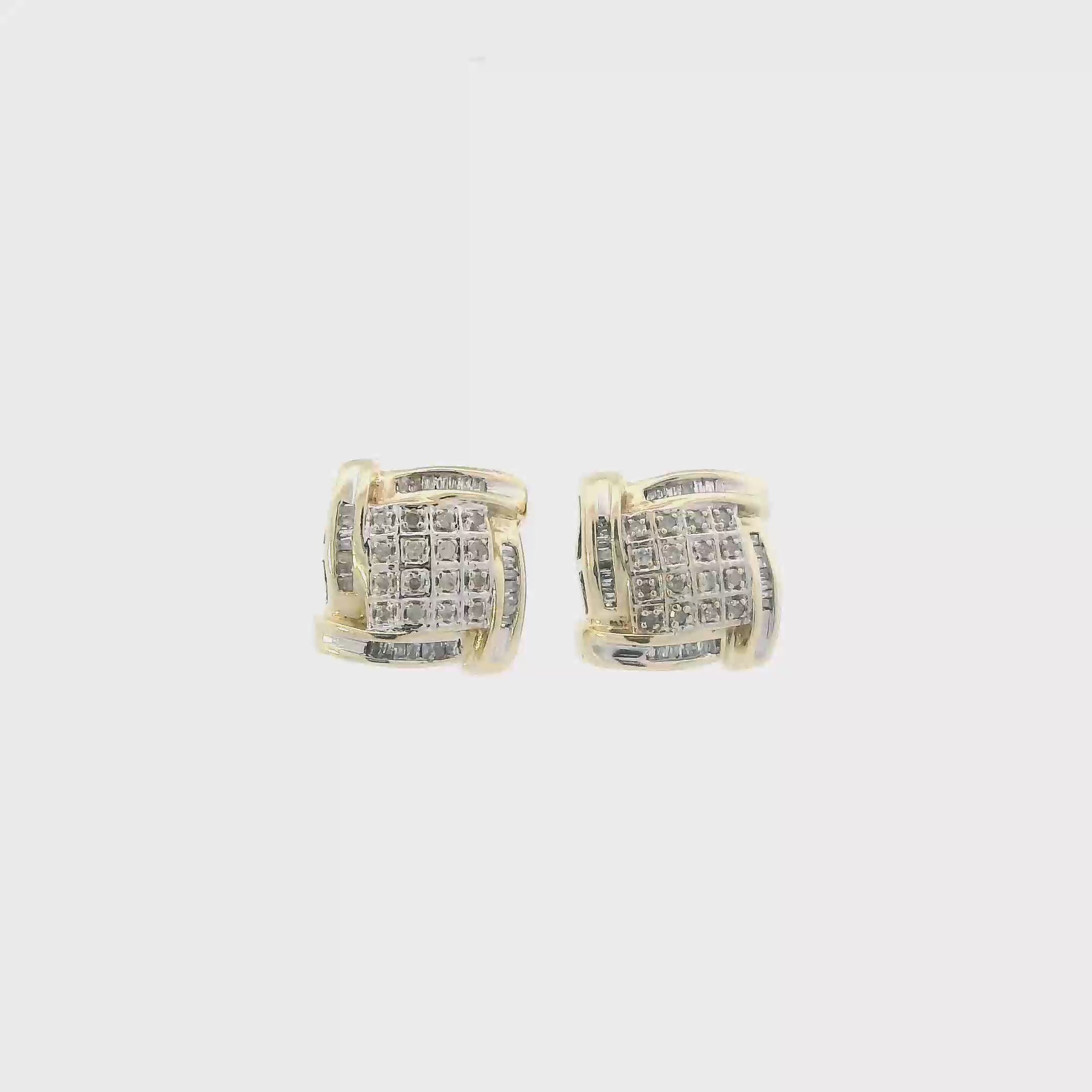 This is a beautiful gold diamond square earring set that is in clean preowned condition. It has been authenticated and polished by our in-house goldsmith.
