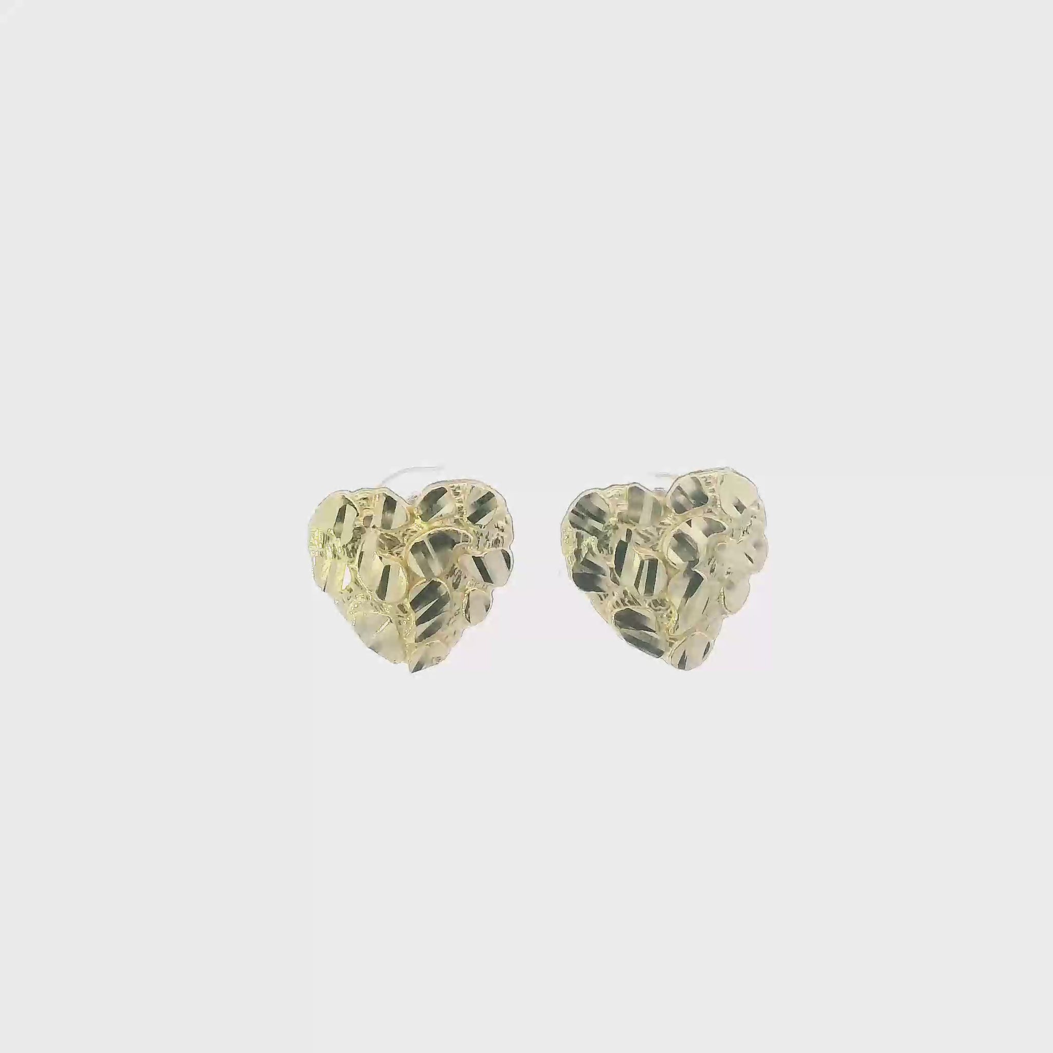 10K Yellow Gold Nugget Heart Stud Earrings