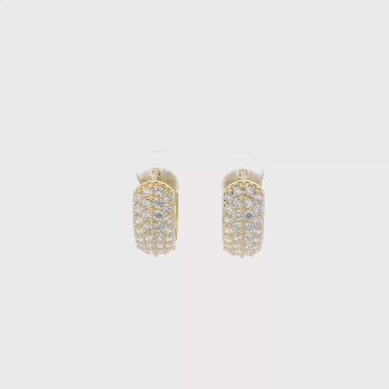This is a beautiful gold pave cz huggie hoop earring set that is in clean preowned condition. It has been authenticated and polished by our in-house goldsmith.