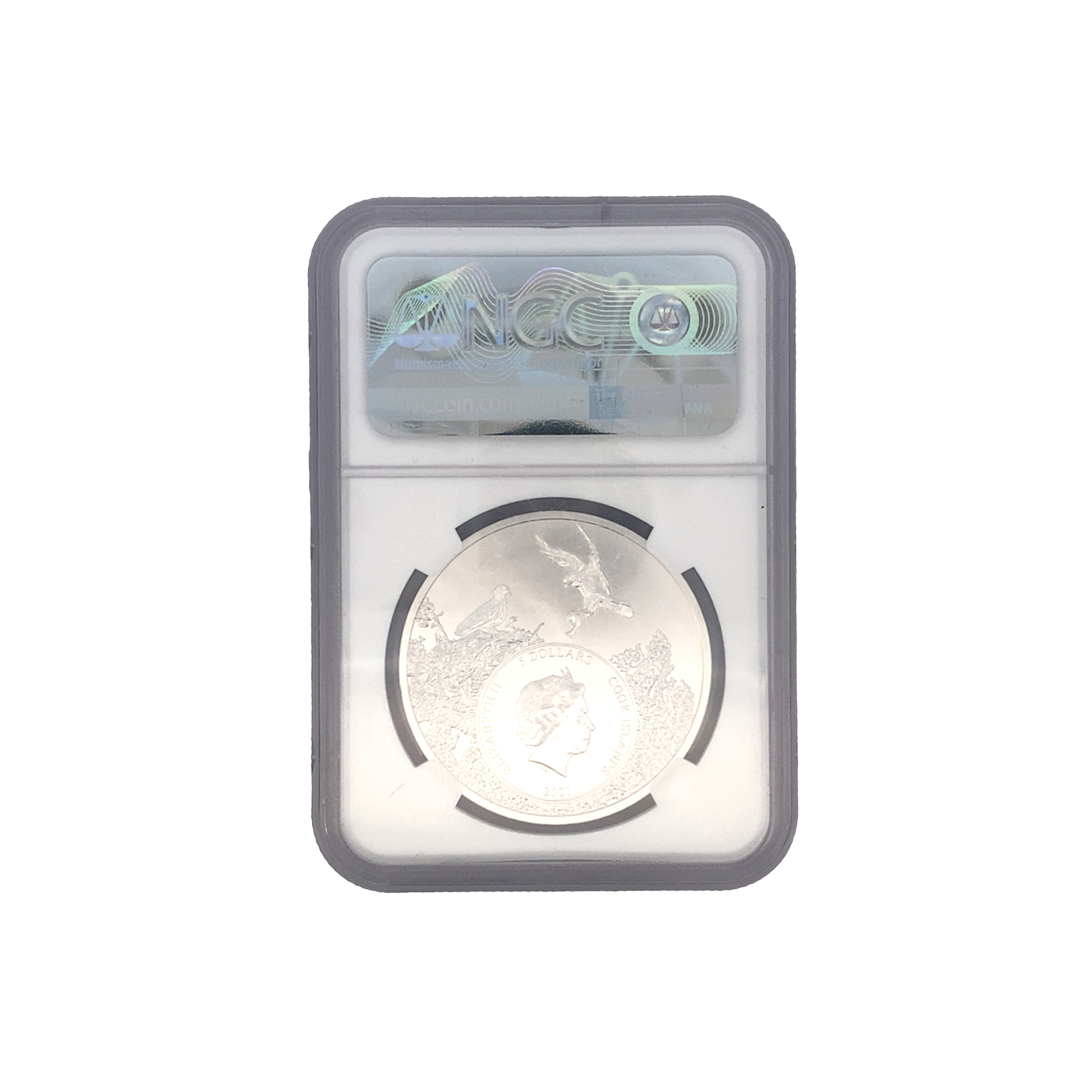 This is an 2021, 1 Oz Cook island Michigan trout animal series silver coin in a NGC authentic plastic case.