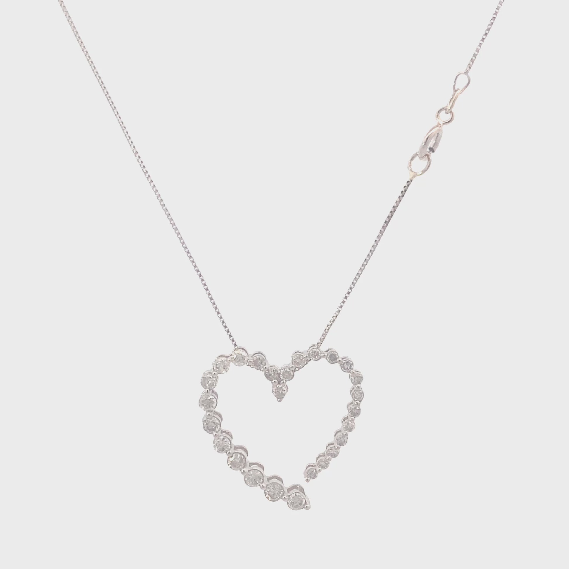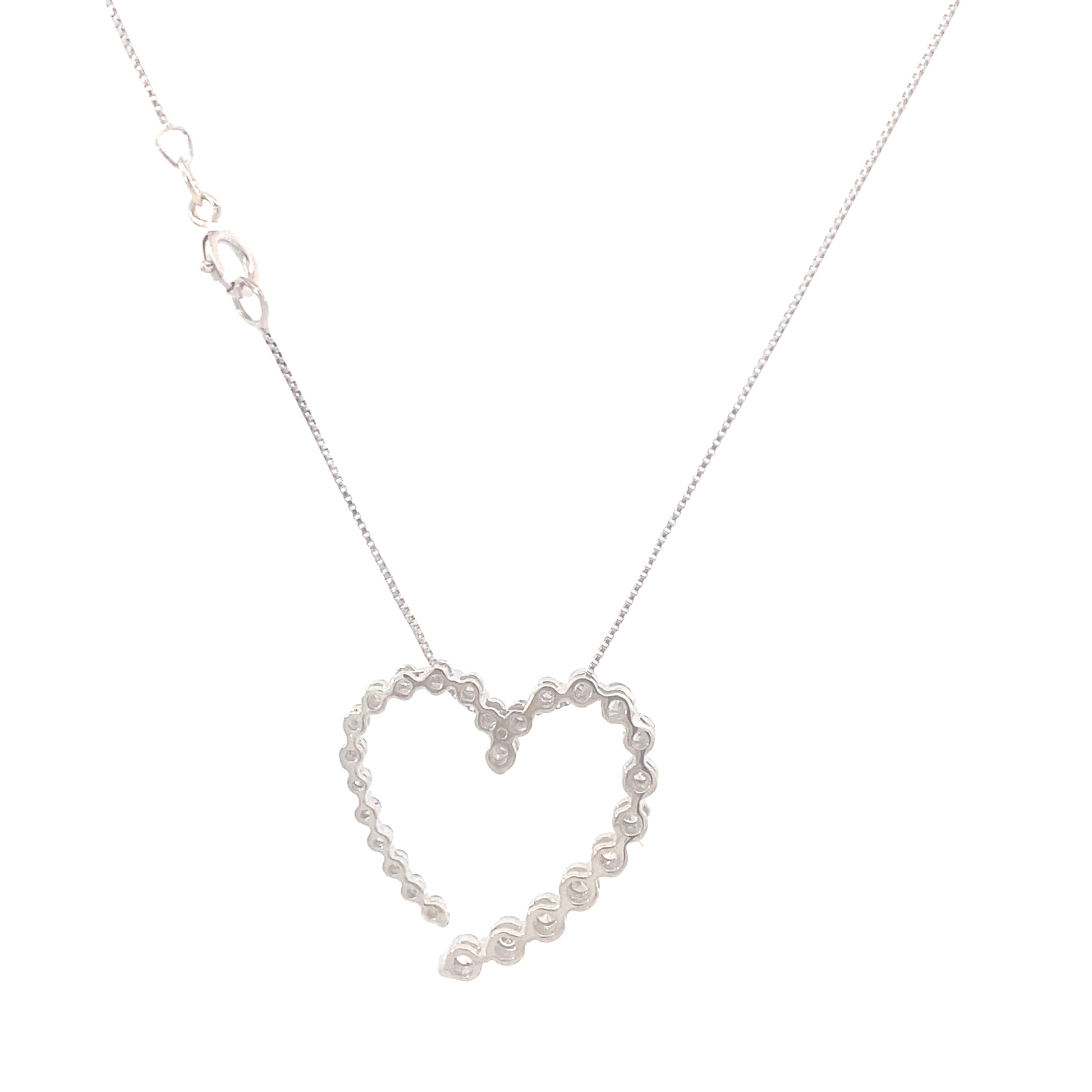 10K White Gold Diamond Heart Pendant & 19.5" Box Chain -0.46ct