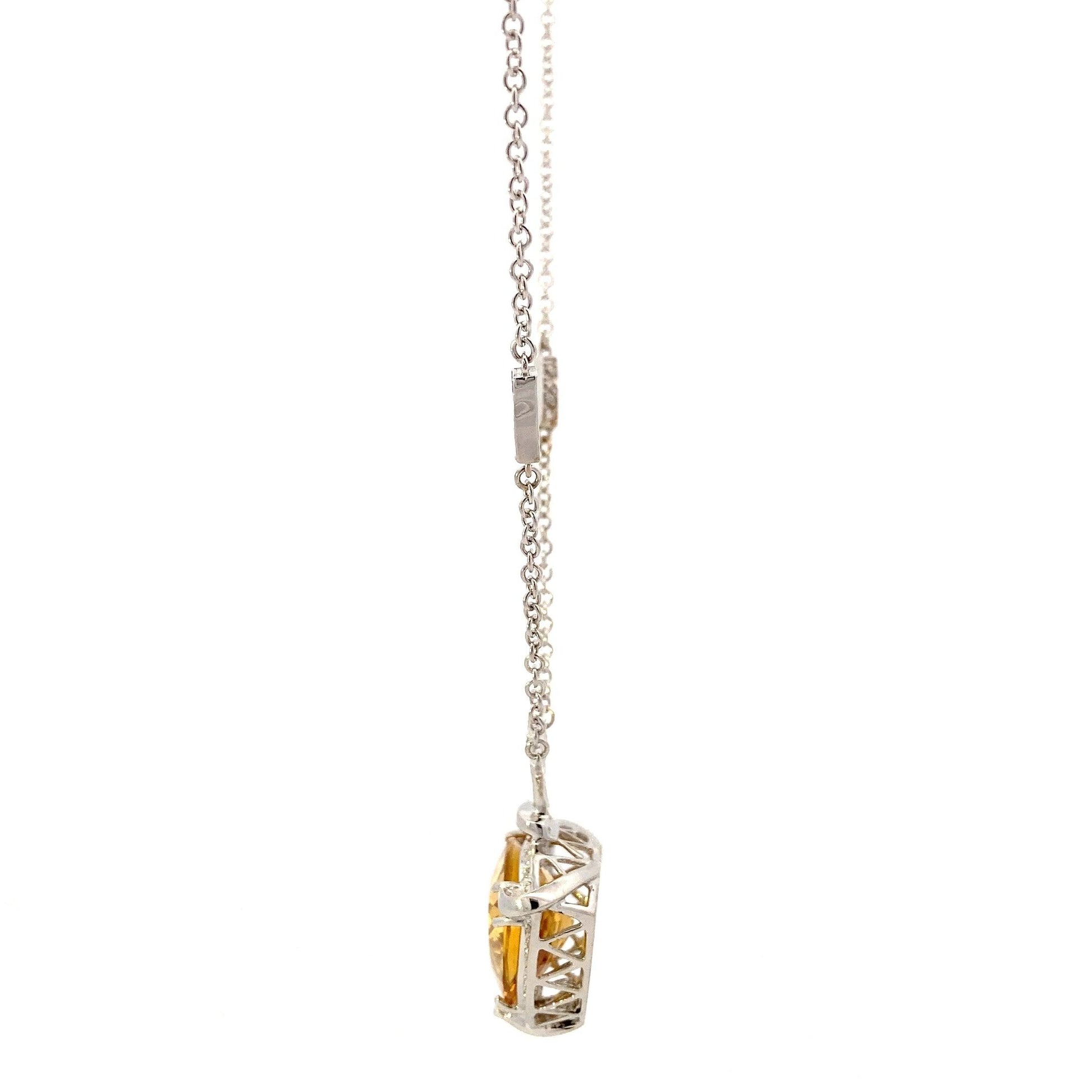 14K White Gold Citrine & Diamond Pendant & Cable Chain Set - 0.19ct