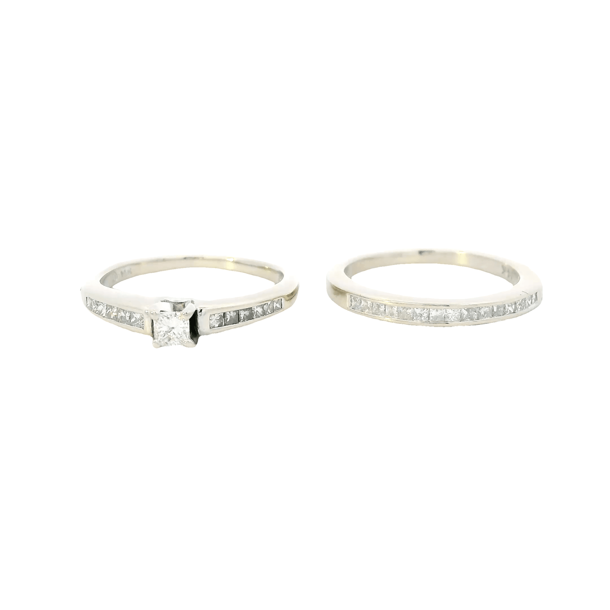 14K White Gold Diamond Engagement & Wedding Ring Set - 0.78ct