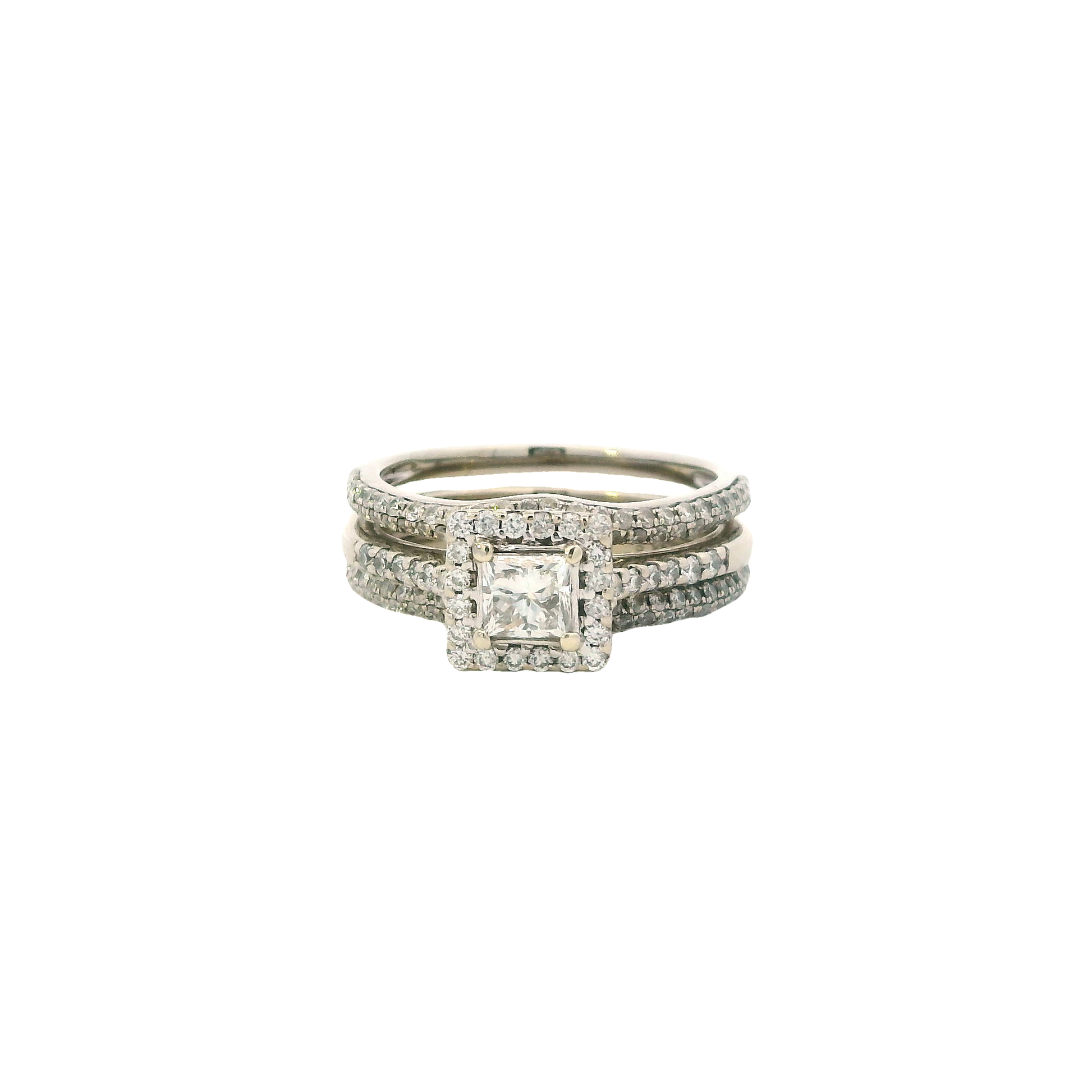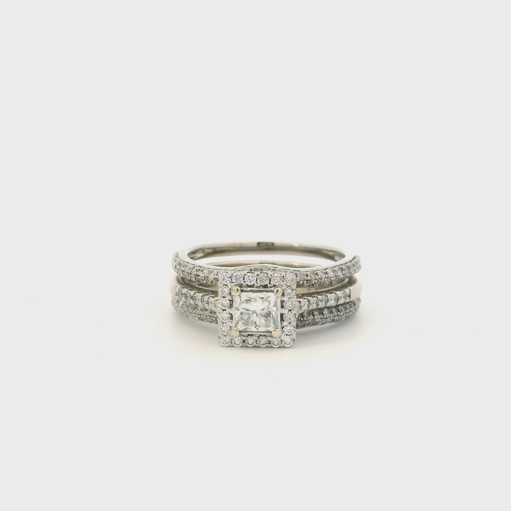 14K White Gold Diamond Engagement & Wedding Ring Set - 0.96ct