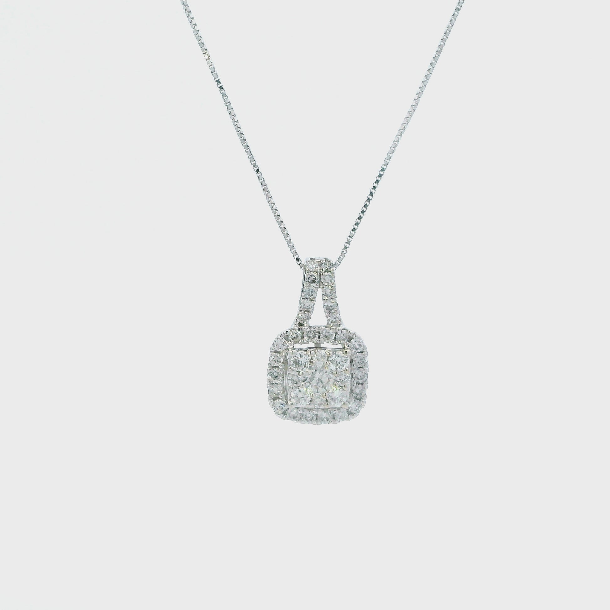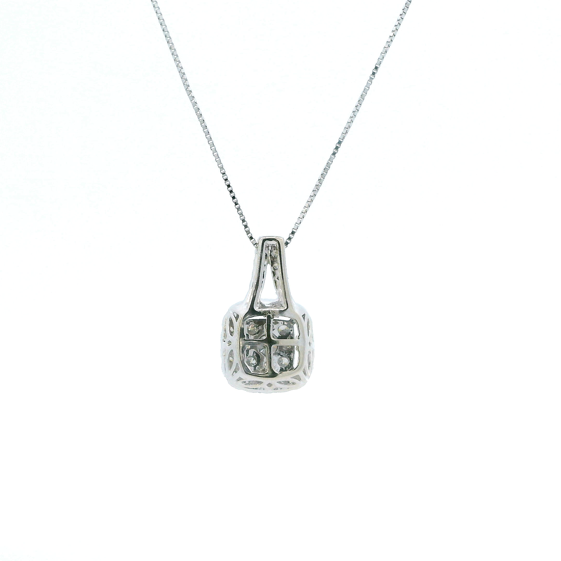 This is a beautiful diamond pendant & box chain that is in clean preowned condition. It has been authenticated and polished by our in-house goldsmith / gemologist.