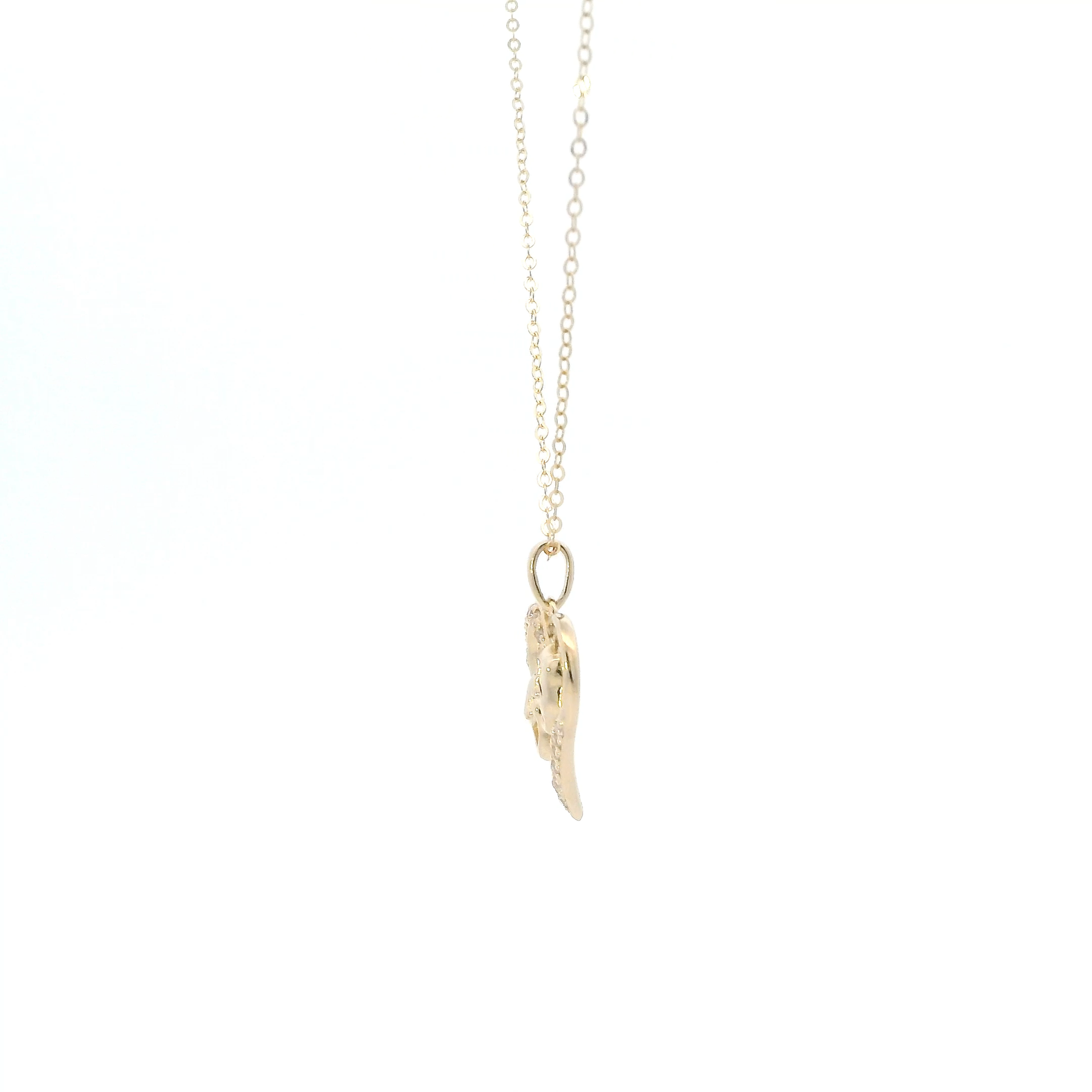 14K Yellow Gold Mask Heart Pendant & Cable Chain Set