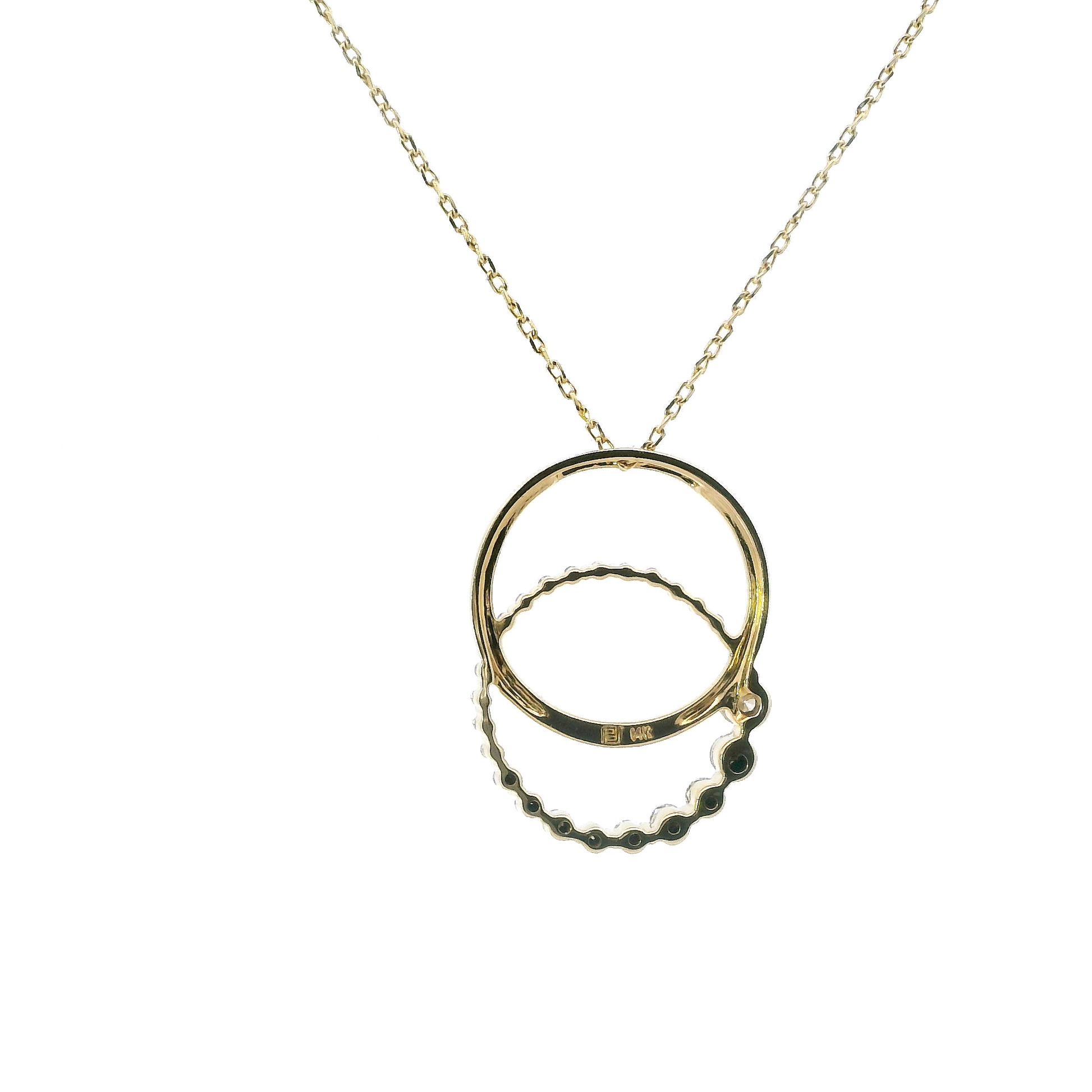 14K Yellow Gold Diamond Double Circle Pendant & 17" Cable Chain-0.34ct