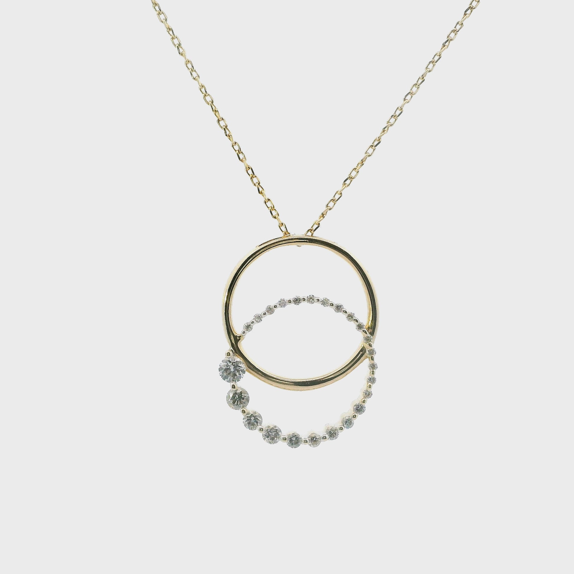 This is a beautiful gold double circle pendant that is in clean condition. It has been authenticated and polished by our in-house goldsmith.