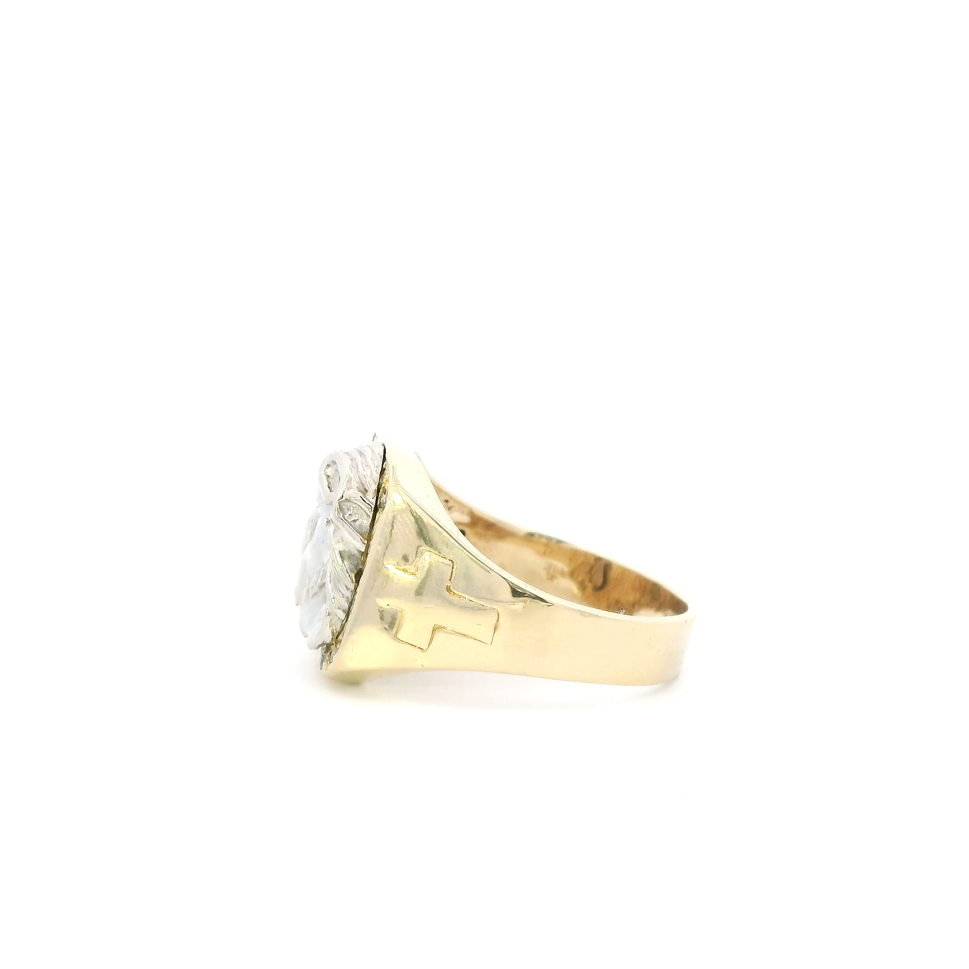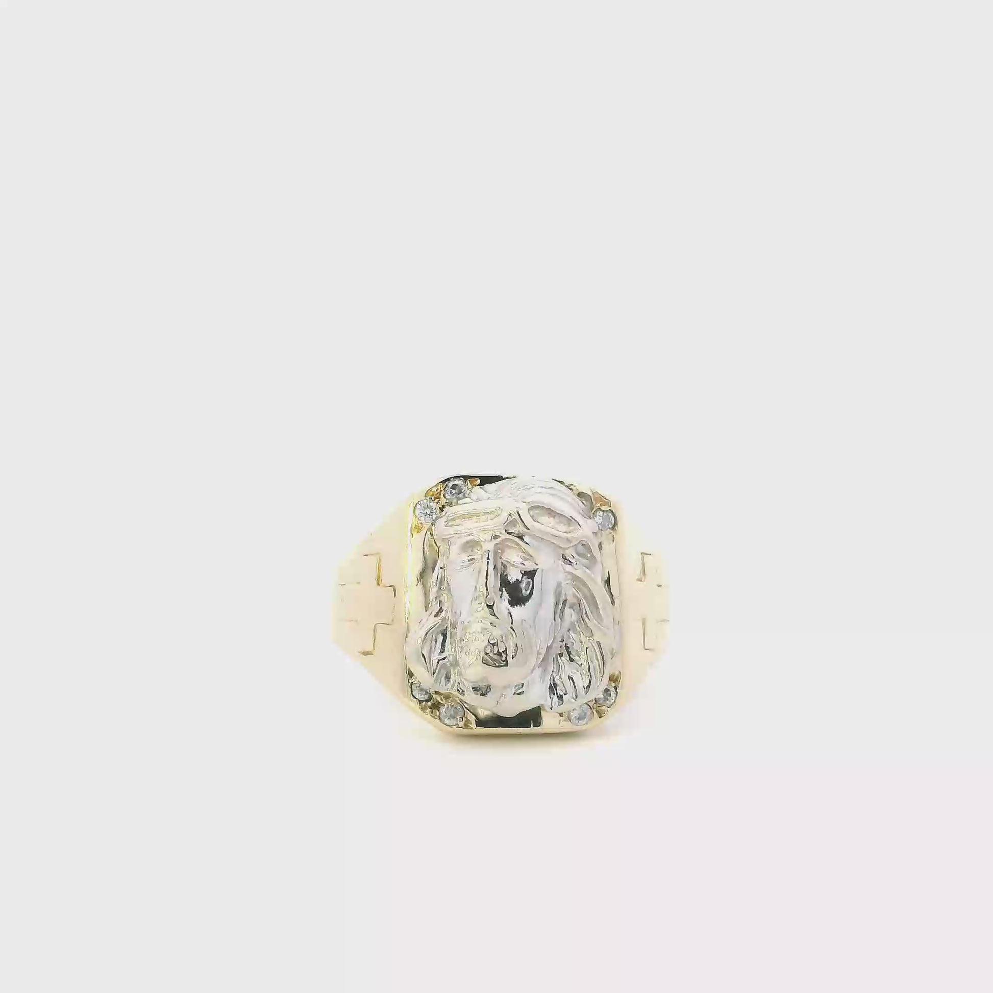 14K Yellow & White Gold Jesus Face & Cross Men's Ring
