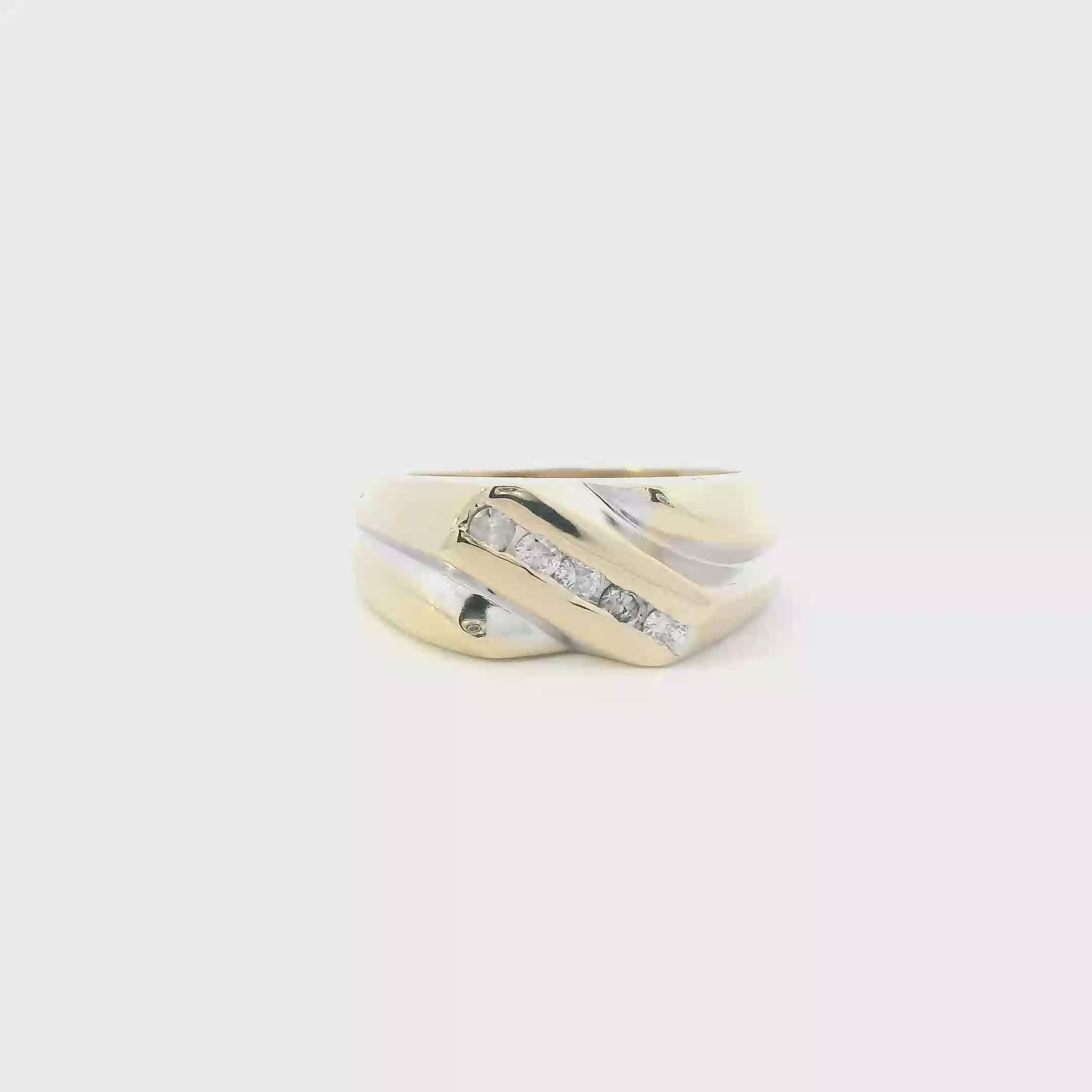 10K Yellow & White Gold Diamonds Mens Ring - 0.20ct