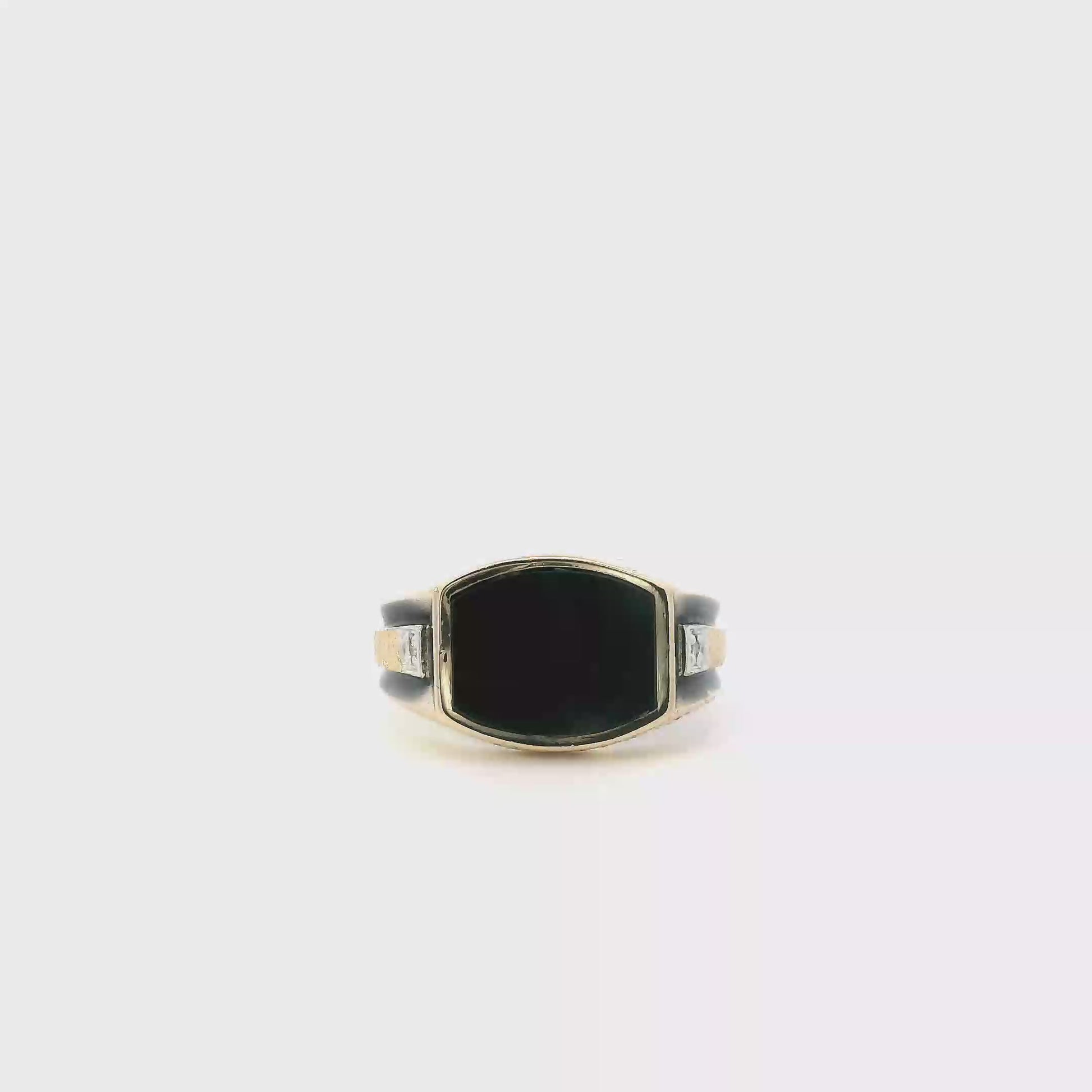 This is a beautiful gold black onyx ring that is in clean preowned condition. It has been authenticated and polished by our in-house goldsmith / gemologist.