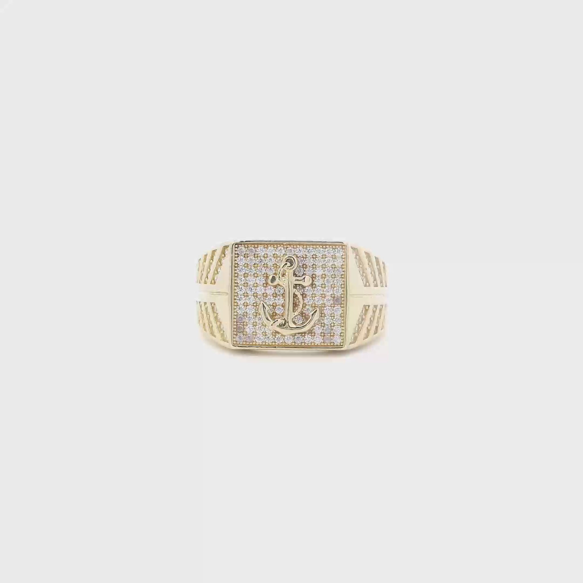 14K Yellow Gold CZ Pave Square Anchor Mens Ring