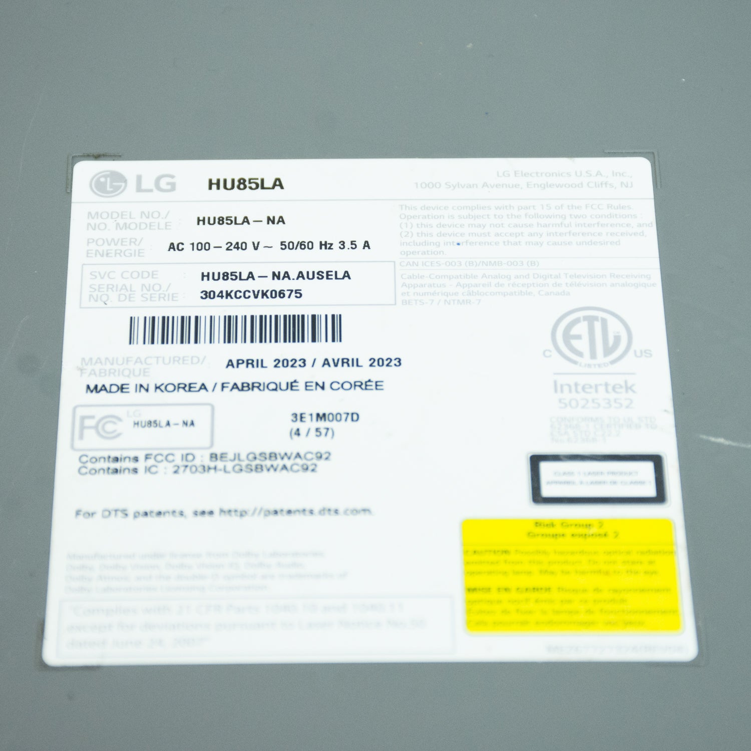LG HU85LA 4K UDH LAser Home Theater Cinebeam Projector