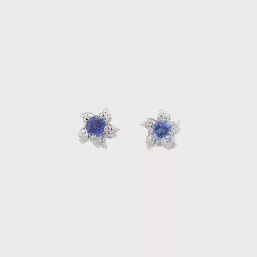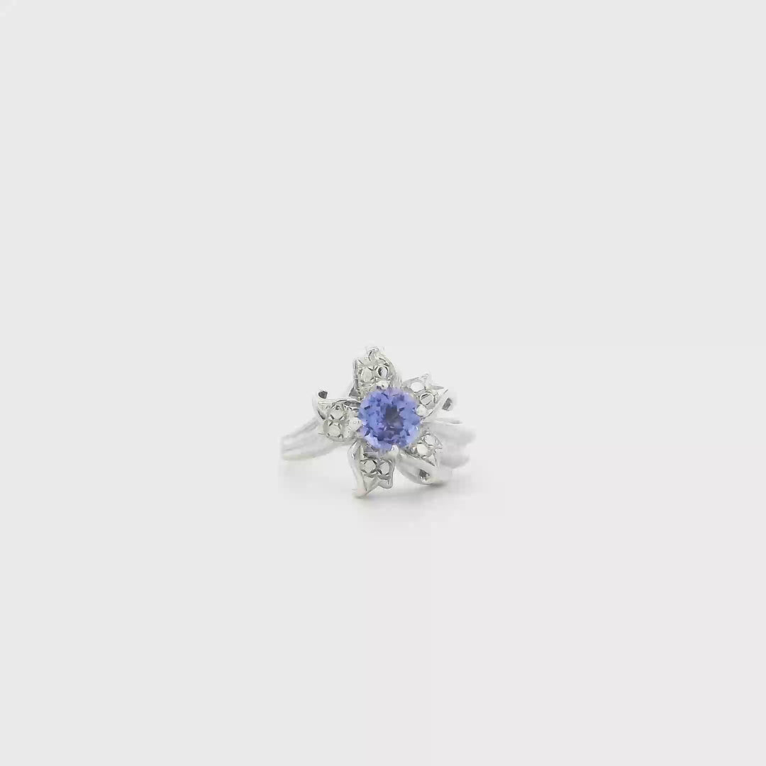 14K White Gold Tanzanite Flower Womans Ring & Tanzanite Earrings Set