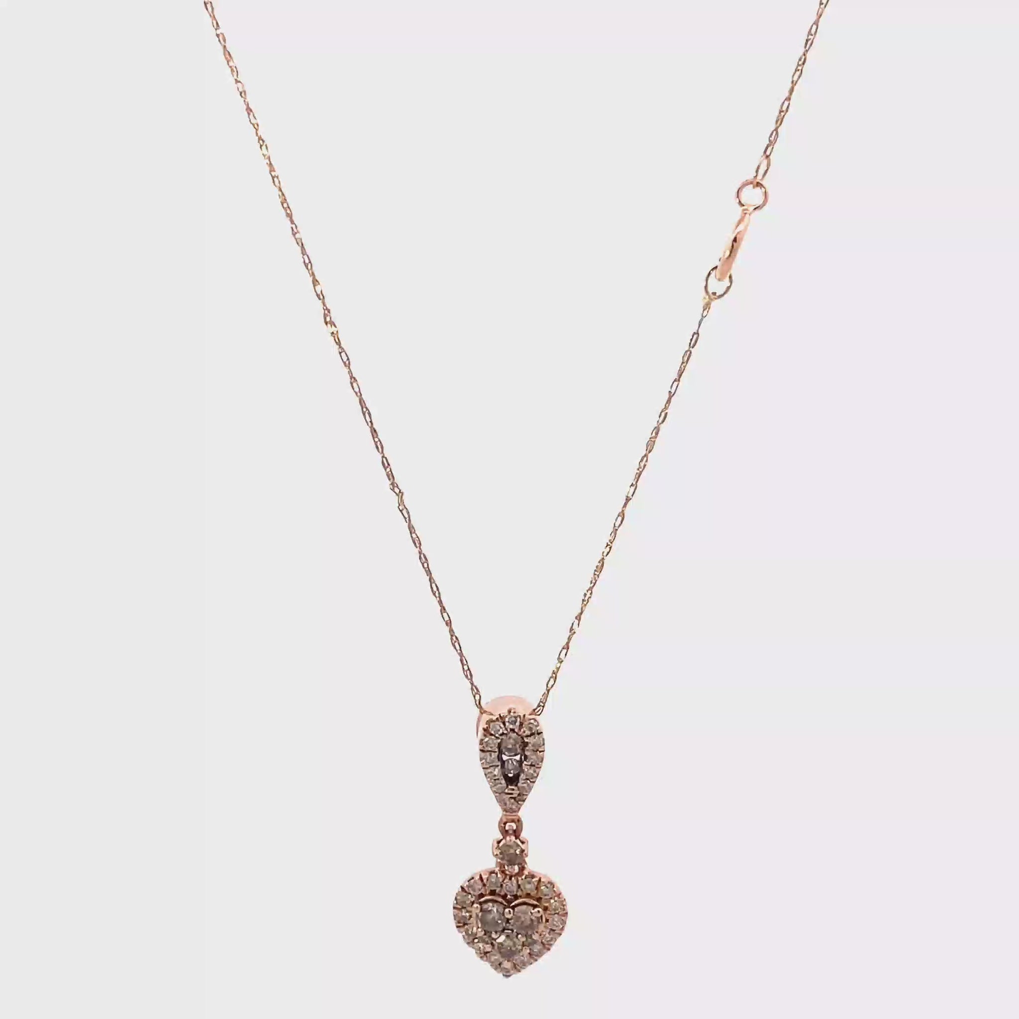 10K Rose Gold Diamond Heart Pendant & Rope Chain Set - 0.42ct