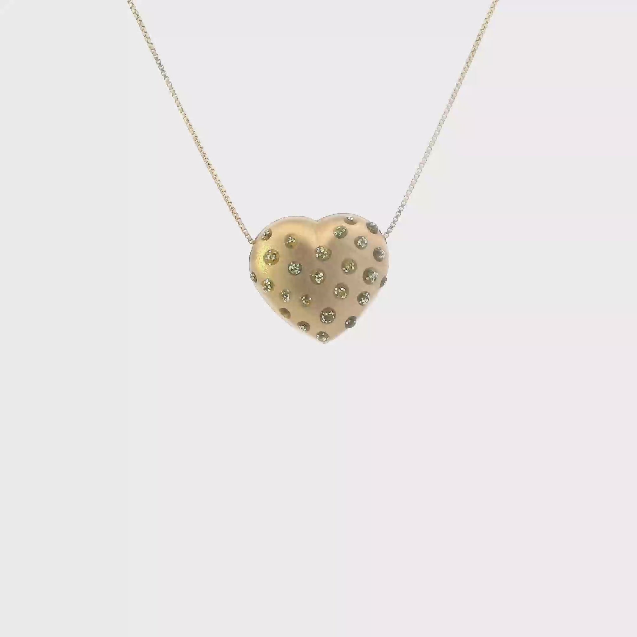 This is a beautiful gold puff heart pendant & box chain that is in clean preowned condition. It has been authenticated and polished by our in-house goldsmith.