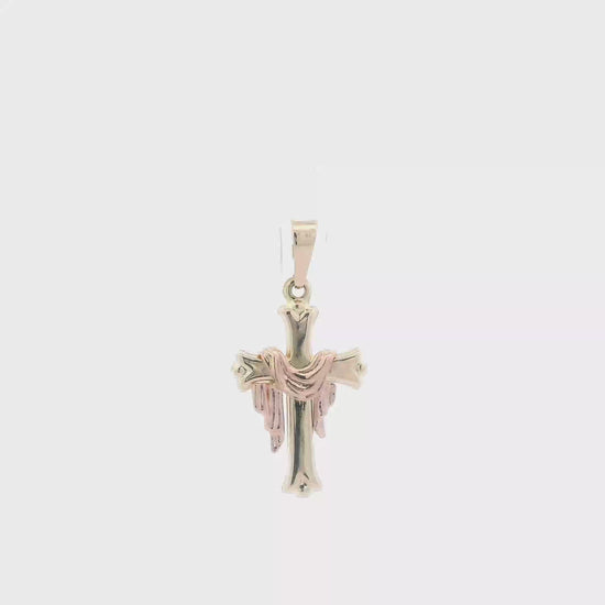 14K Yellow & Rose Gold Draped Cross Pendant