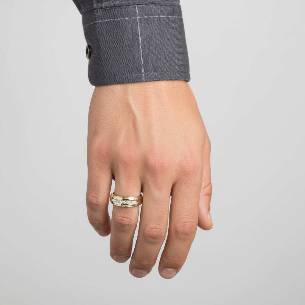 14K Yellow & White Gold Diamond Mens Ring - 0.08ct