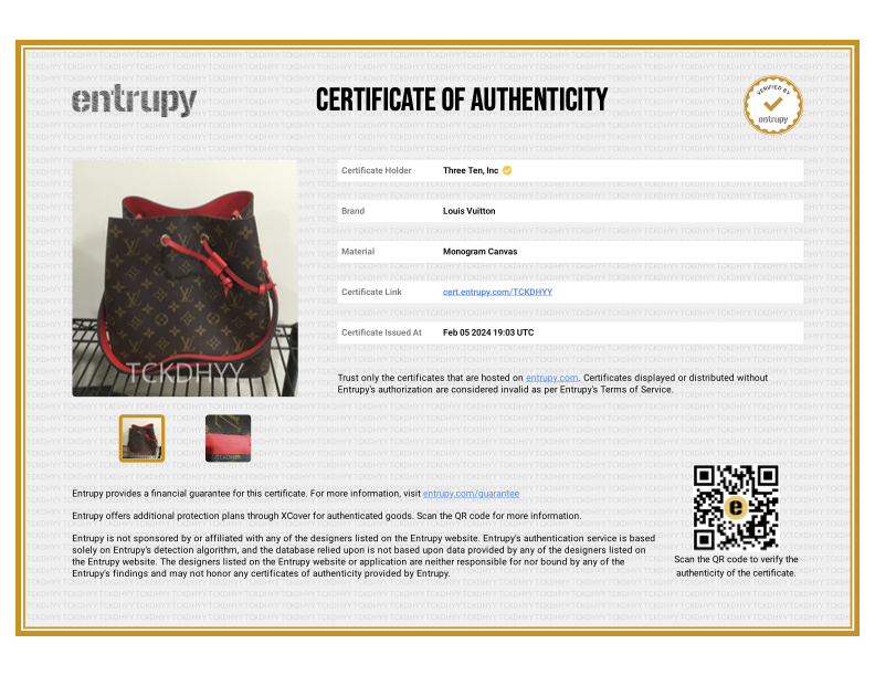 It was authenticated by Entrupy and the certificate comes with the sale.