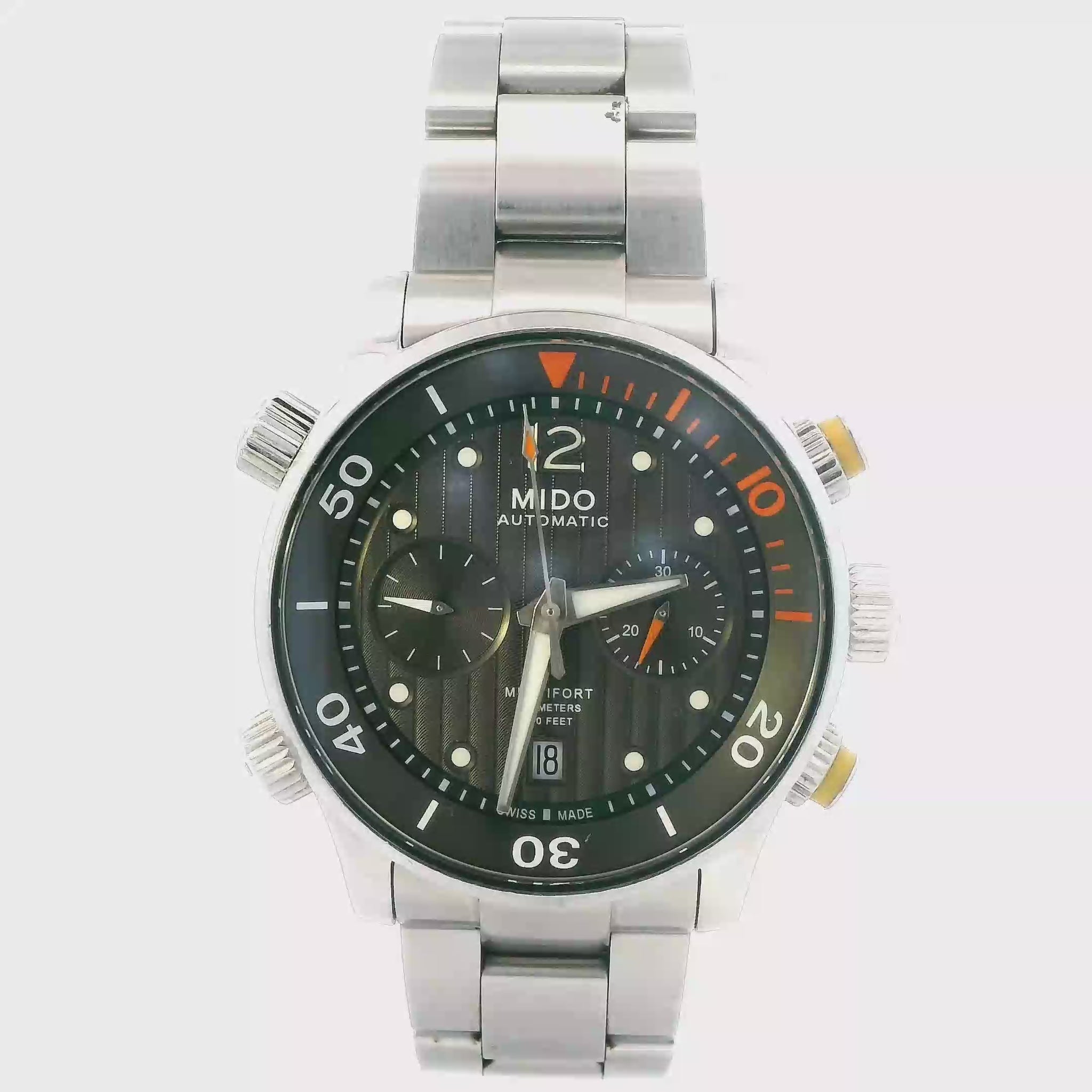 This is a beautiful Mido multifort chronograph automatic wristwatch that is in clean preowned condition. With little to no signs of wear and is fully functional. With original box and extra links.
