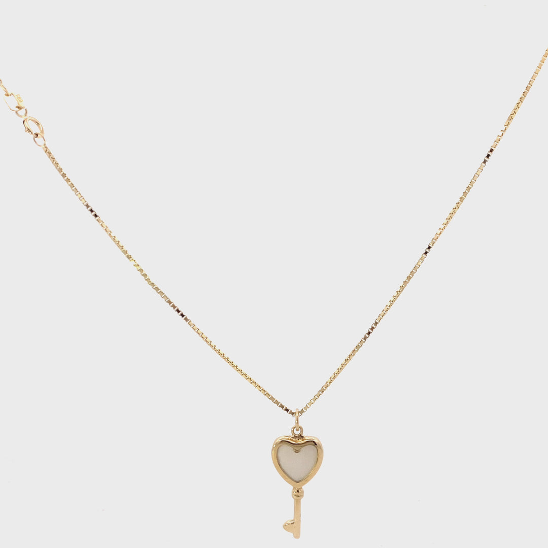 14K Yellow Gold Mother of Pearl Heart Key Necklace