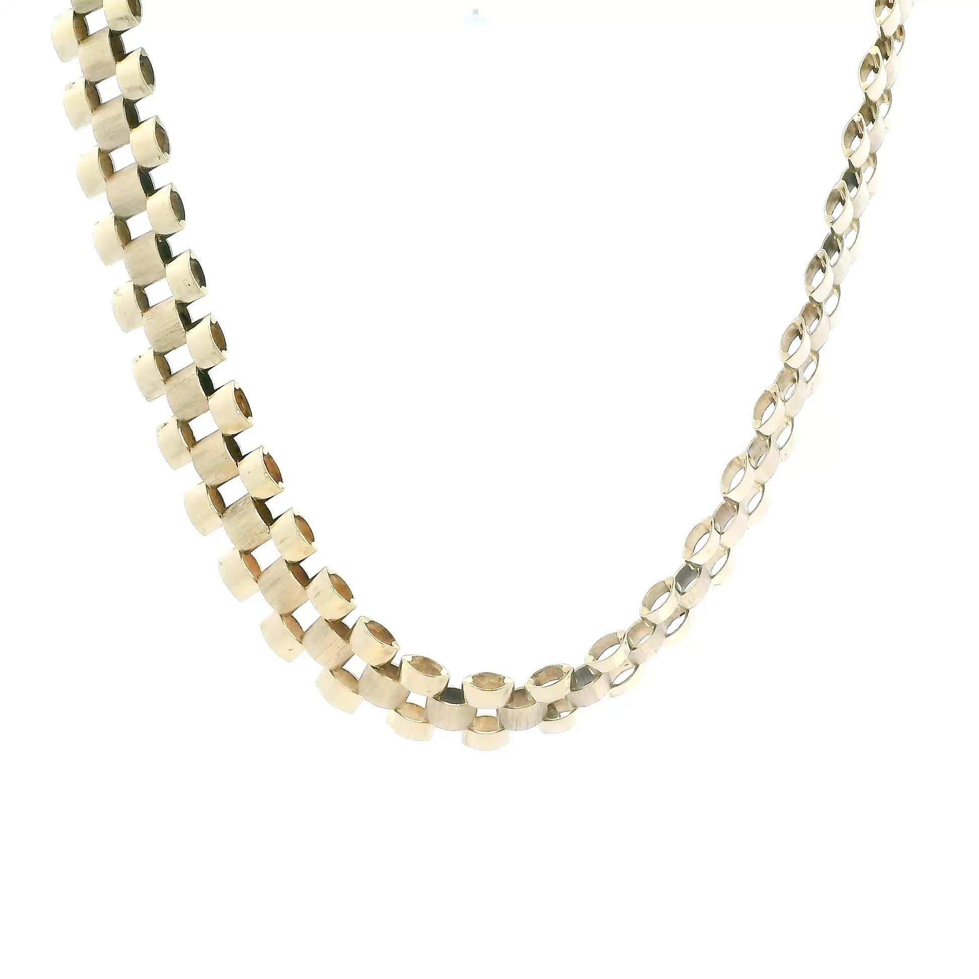 This is a beautiful gold Rolex chain that is in clean preowned condition. It has been authenticated and polished by our in-house goldsmith.