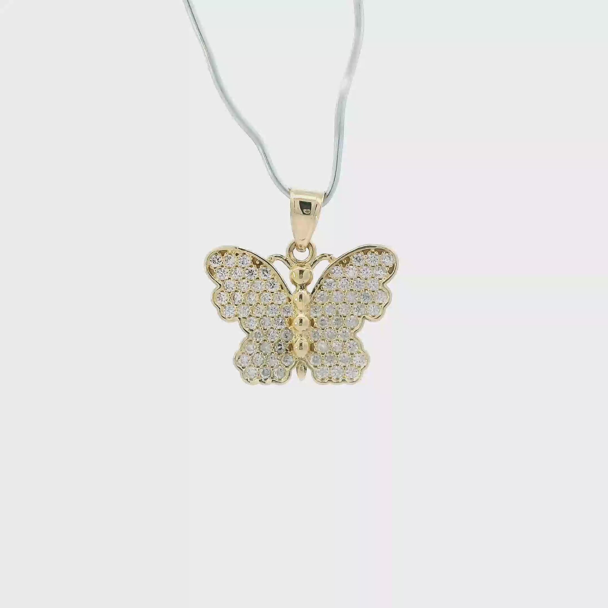 This is a beautiful gold pave butterfly pendant that is in clean preowned condition. It has been authenticated and polished by our in-house goldsmith / gemologist.