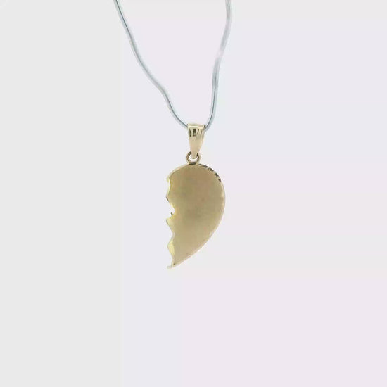 This is a beautiful gold two half heart pendant that is in clean preowned condition. It has been authenticated and polished by our in-house goldsmith / gemologist.