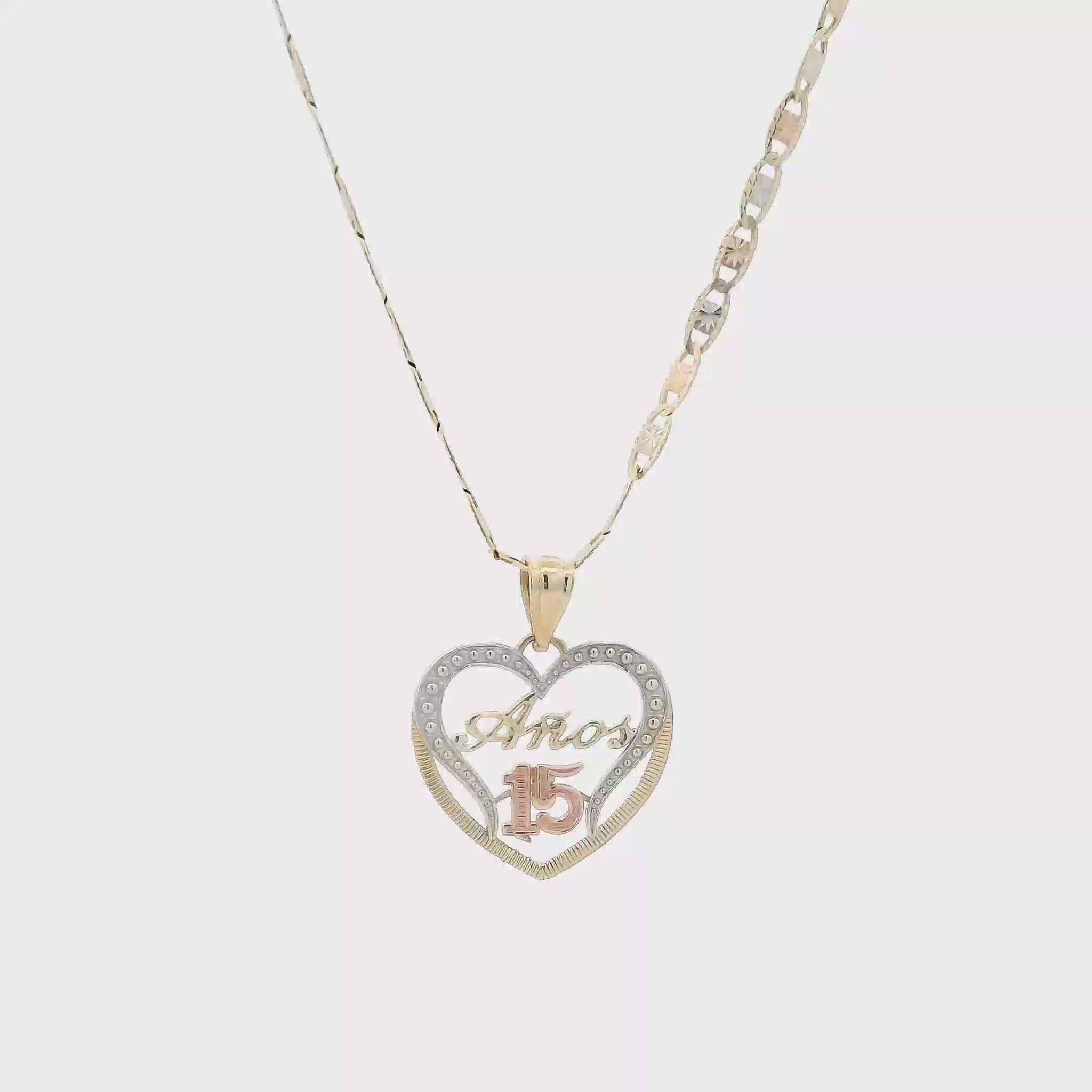14K Tri Color "15 Anos" Heart Pendant & 20" Mariner Chain