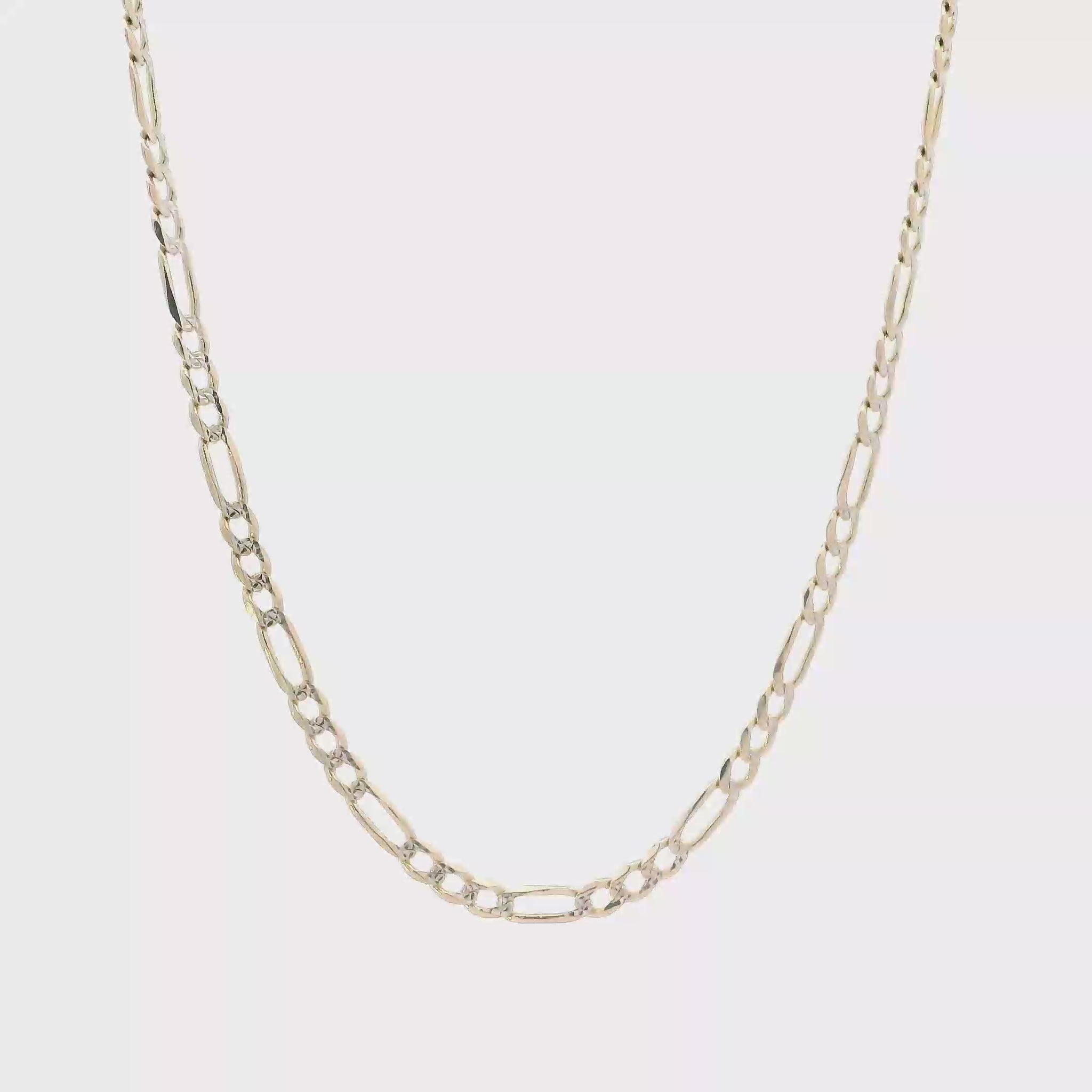 This is a beautiful gold figaro chain that is in clean preowned condition. It has been authenticated and polished by our in-house goldsmith.